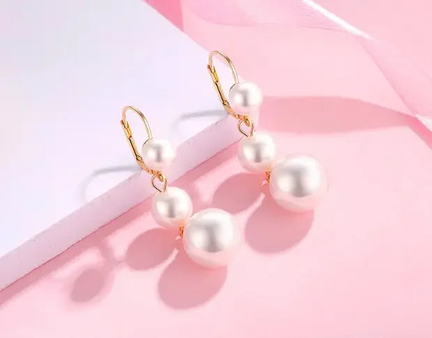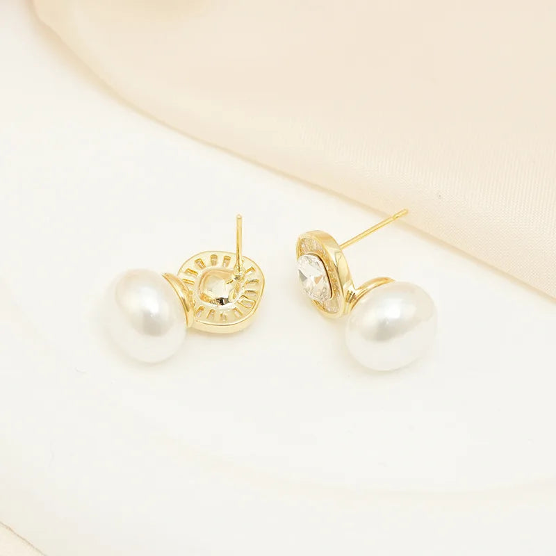 Stylish and Elegant 14k Gold-plated White Pearl Earrings for Ladies Party Wedding Party Accessories