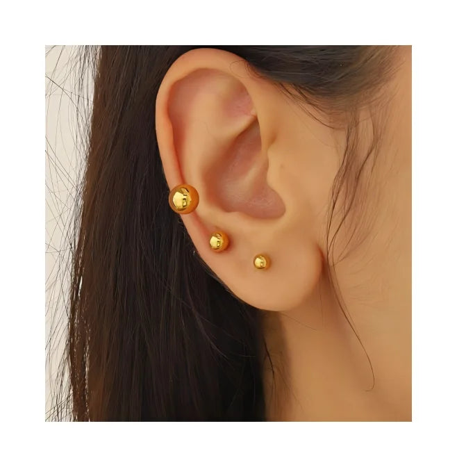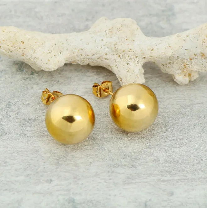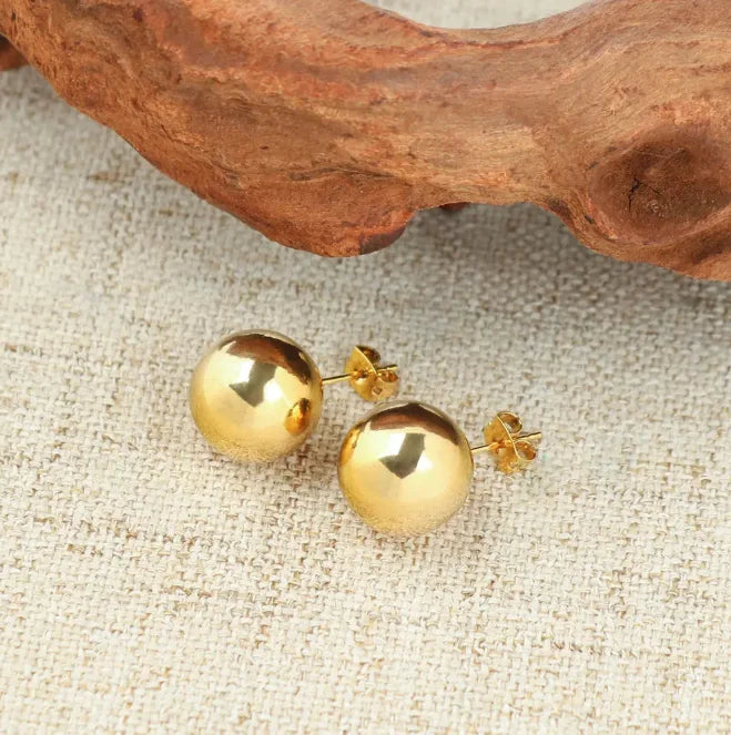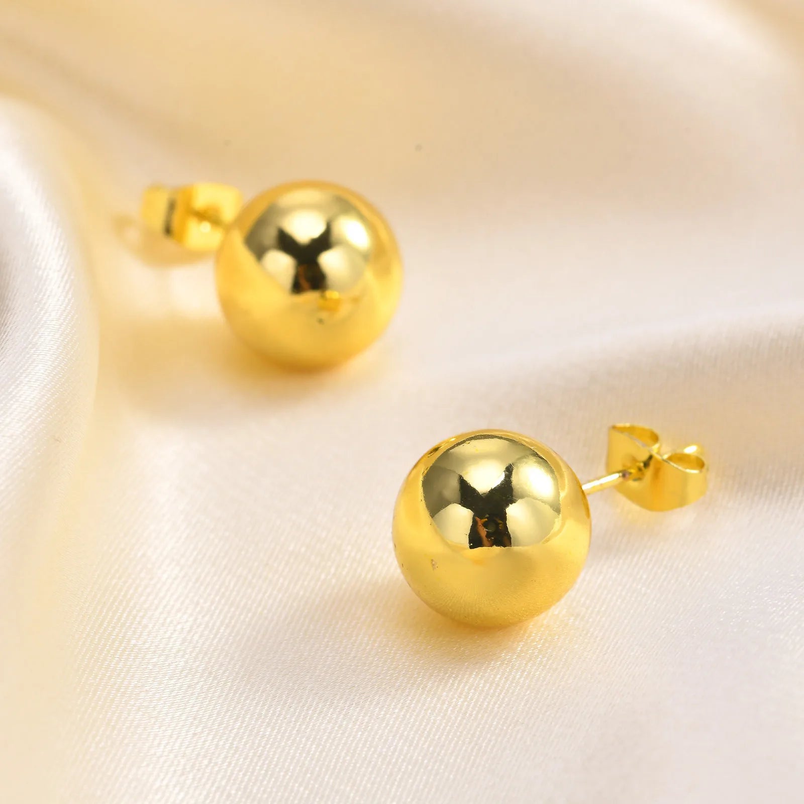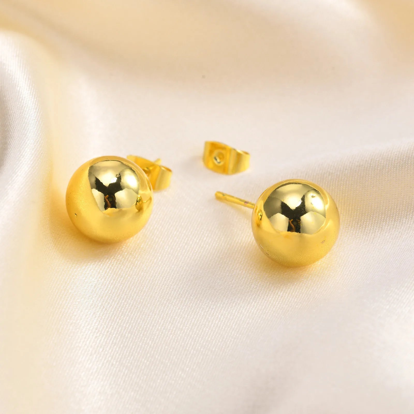 High Quality Fashion Stainless Steel Gold Plated Big Ball Studs Earrings Shiny Geometric Round Bead Earrings