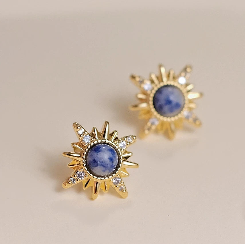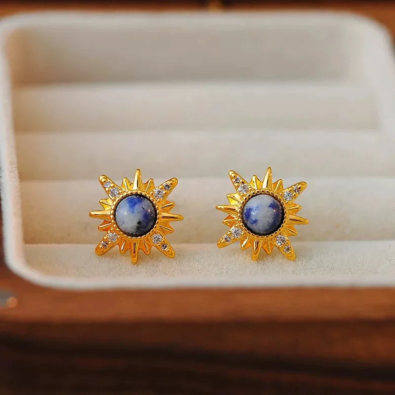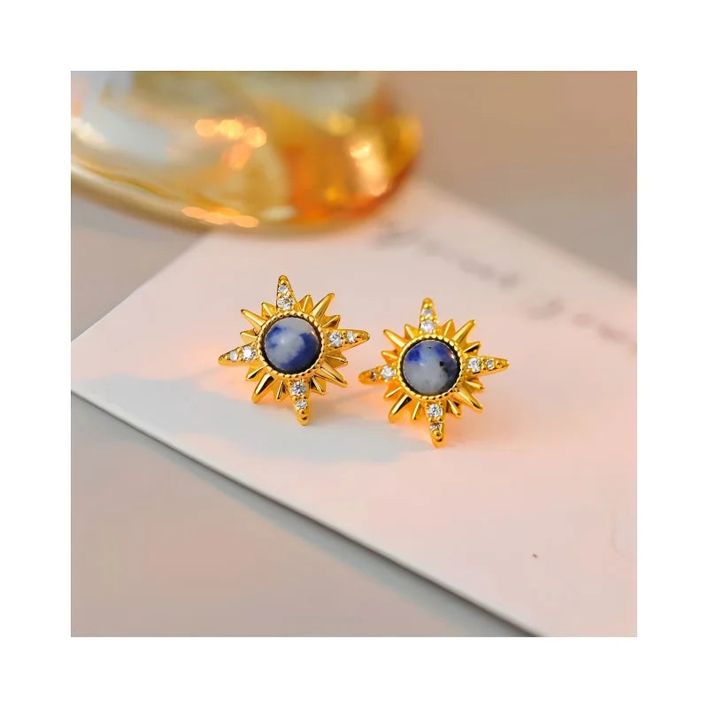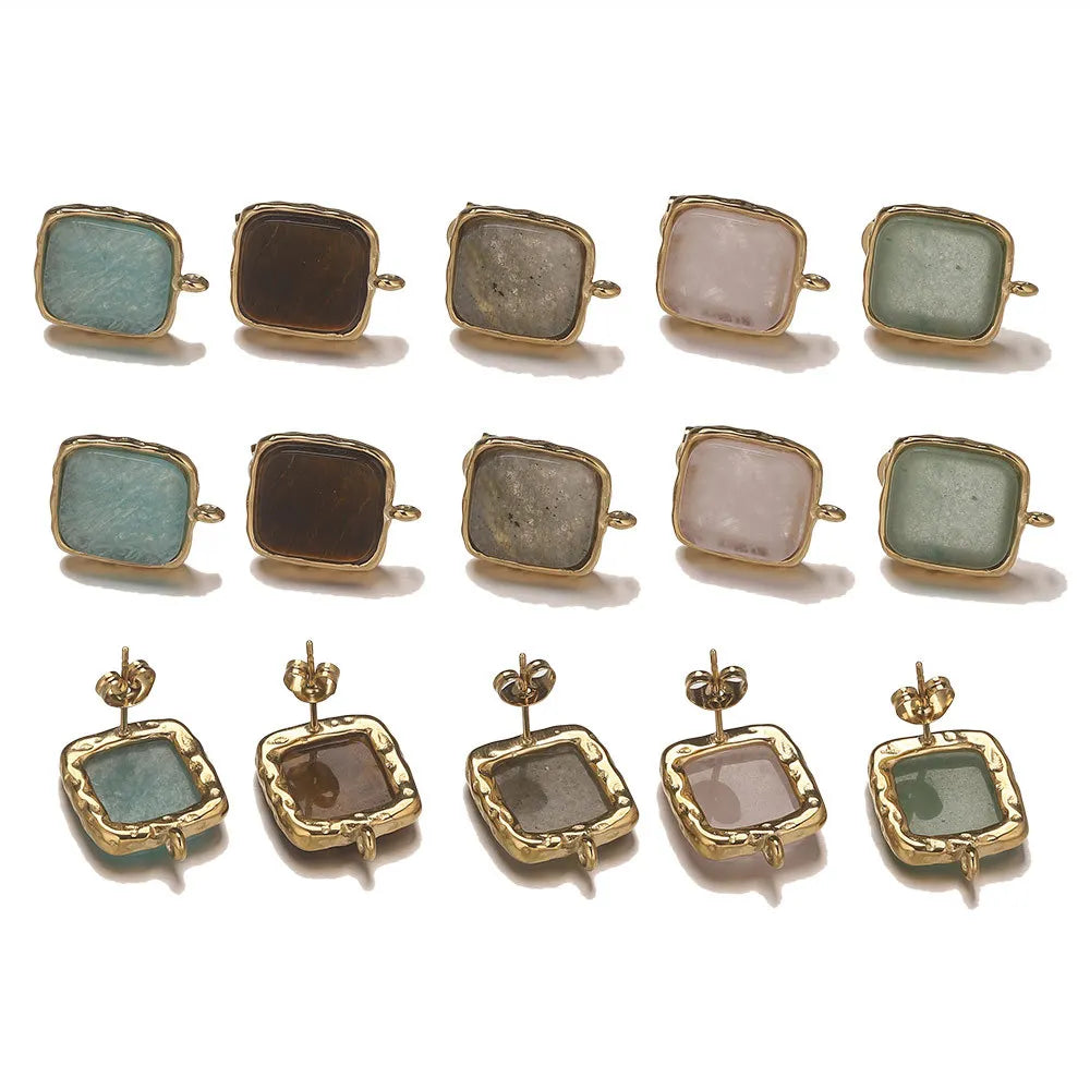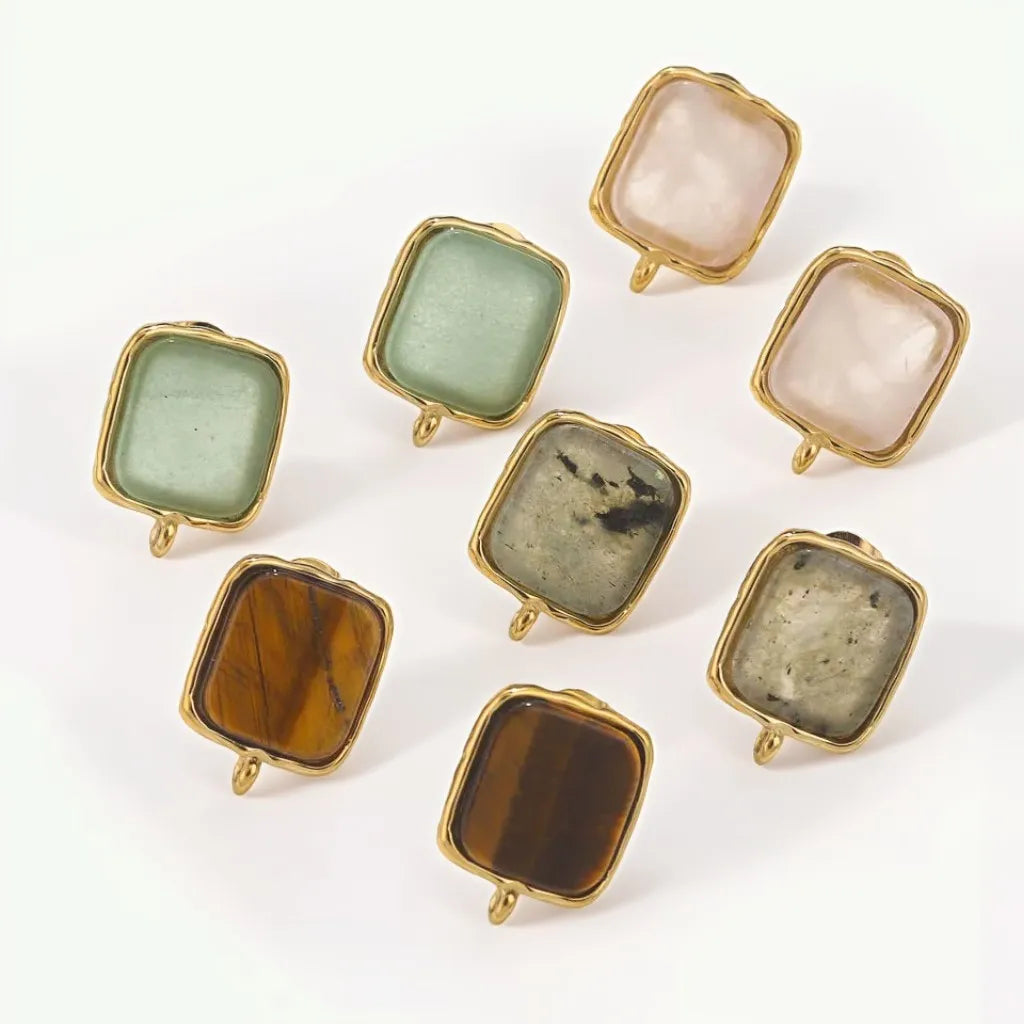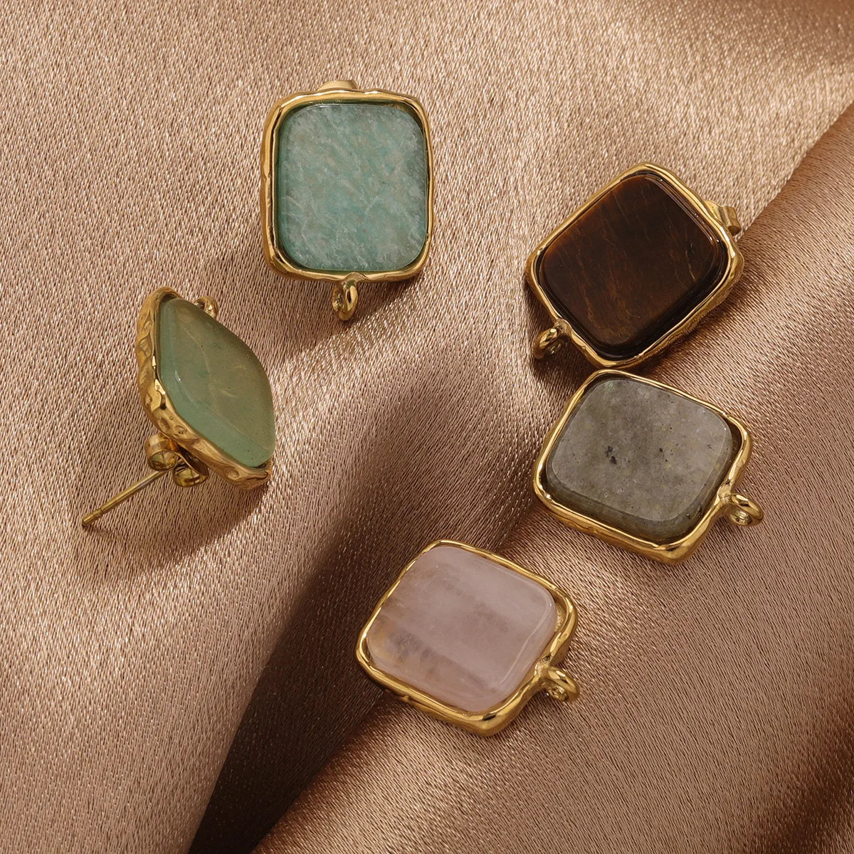 Dainty Natural Stainless Steel Earrings for Women Maillard Style Aquamarine Stone Earrings Jewelry