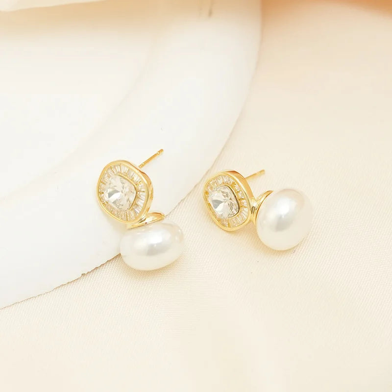 Exquisite S925 Silver Pearl Drop Earrings High-quality Rhinestone Dangle Earrings Set Women's Fashion Jewelry