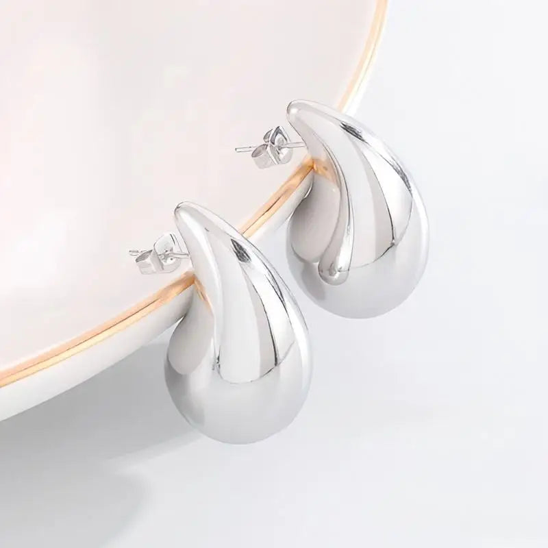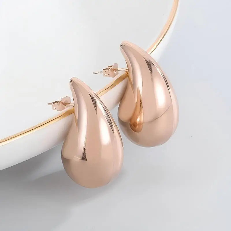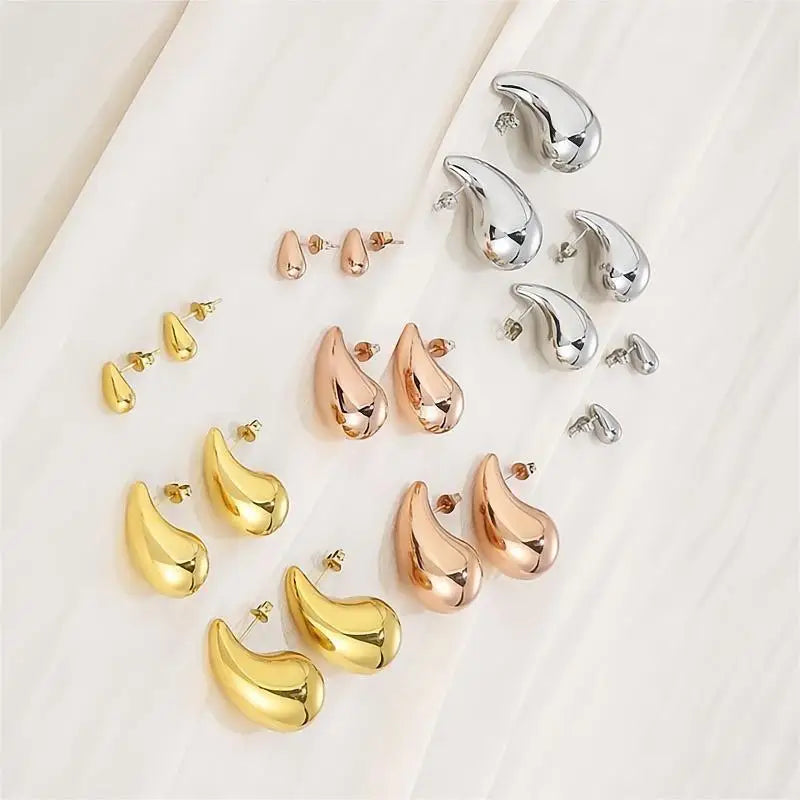 Retro Fashion Charm Hollow Silver Gold Rose Plated Water Droplet Studs Geometric Thick Stainless Teardrop Jewelry for Women