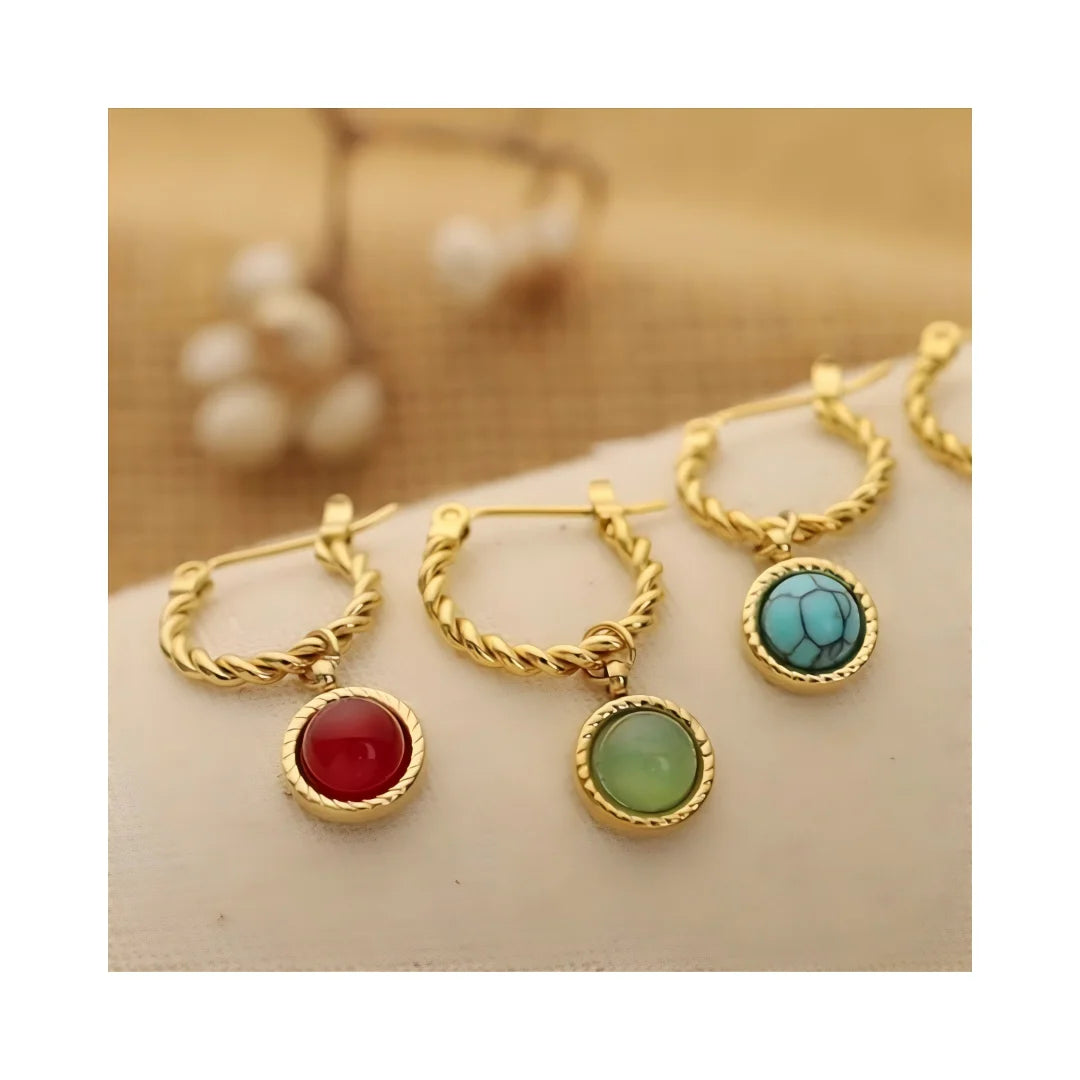 Rope Chain Hoop U Shape Dangle Earring 18k Gold Plated Bohemia Natural Stone Twist Hoops Round Pendant Earrings for Womens