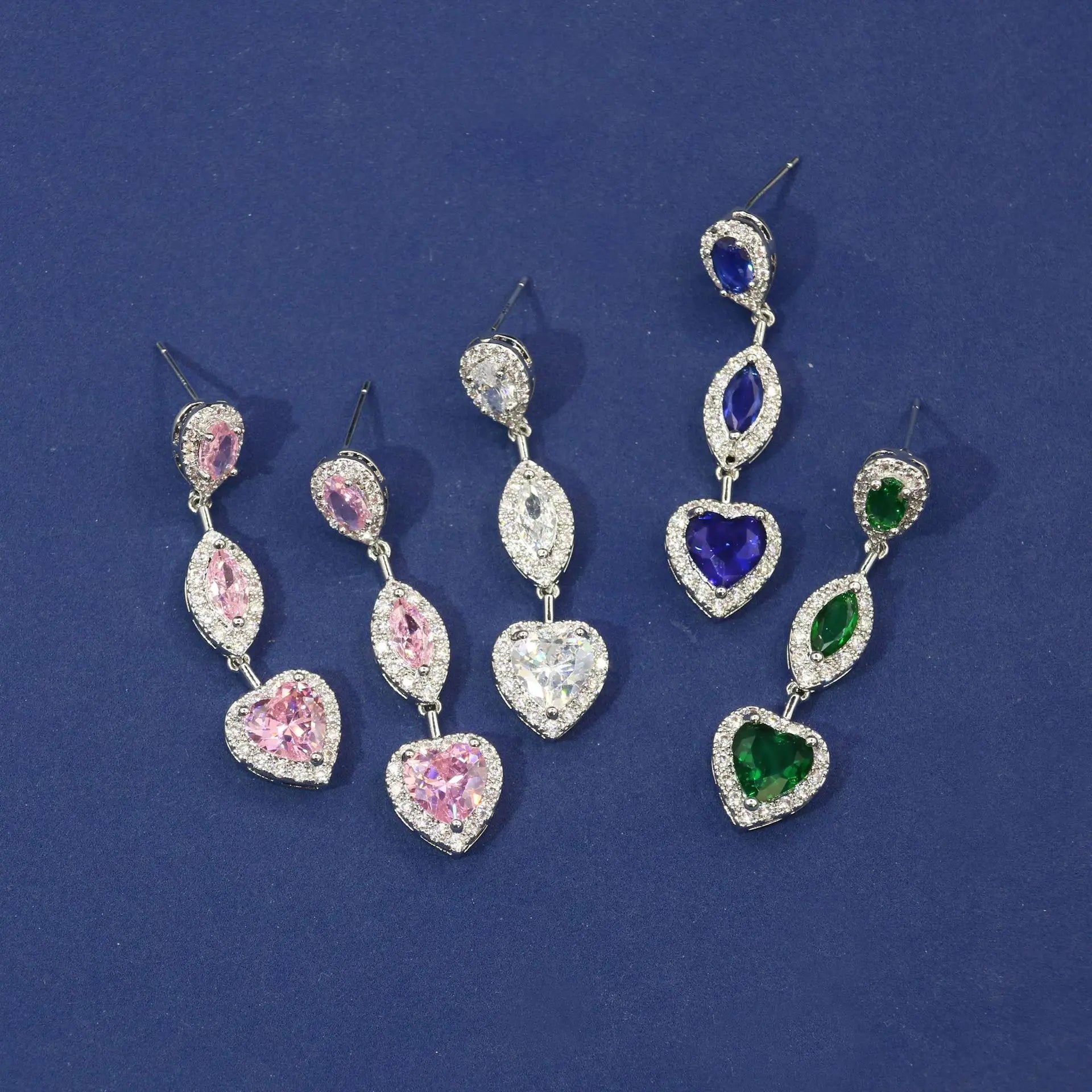 Stylish Geometric Color Diamond Collection Zirconia Drop New Fringe Pendant Earrings Bohemian Party Accessories for Girls