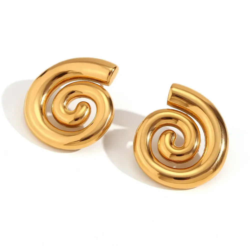 Wholesale Women's Spiral Earrings Exaggerate Stainless Steel Jewelry Fashion 18K Gold Plated Thread Drop Ear Studs Earring