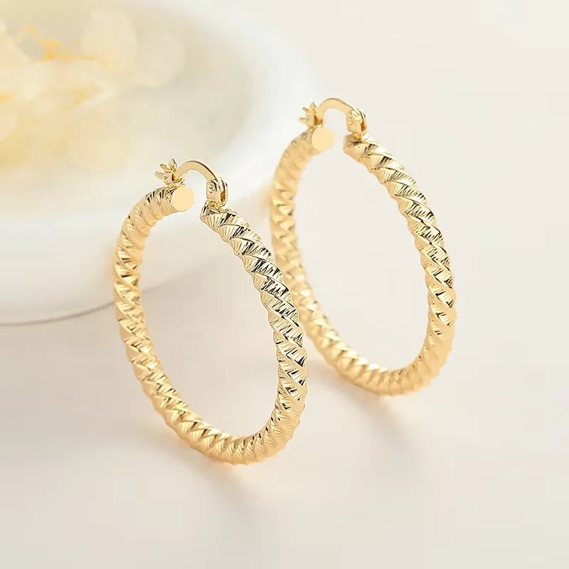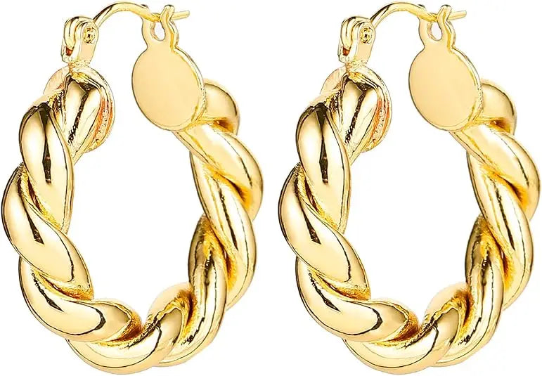 Gold Hoop Earrings for Women 14K Real Gold Plated Round Twist Shape Earrings Stainless Steel Womens Chunky Hoop Earrings Set