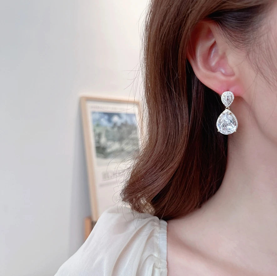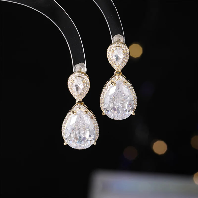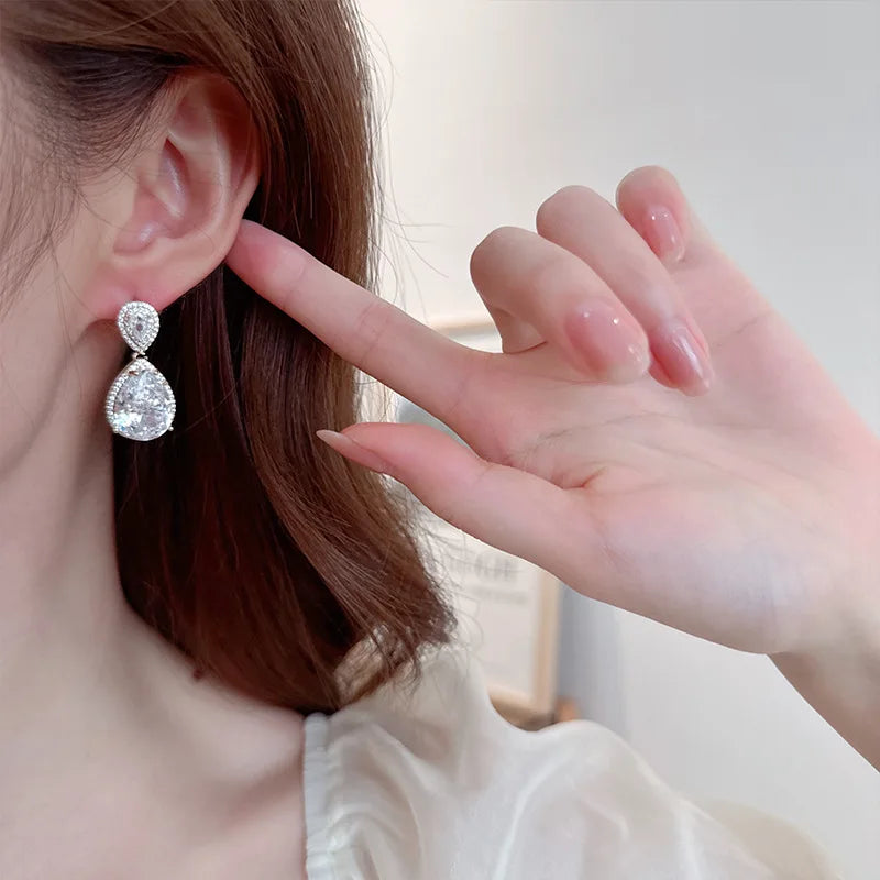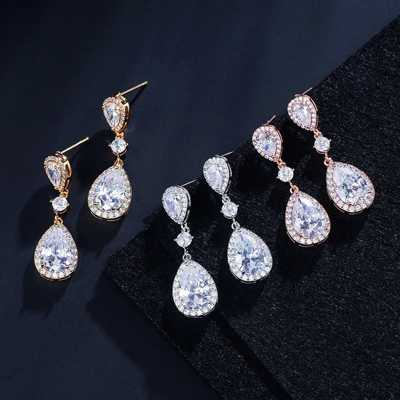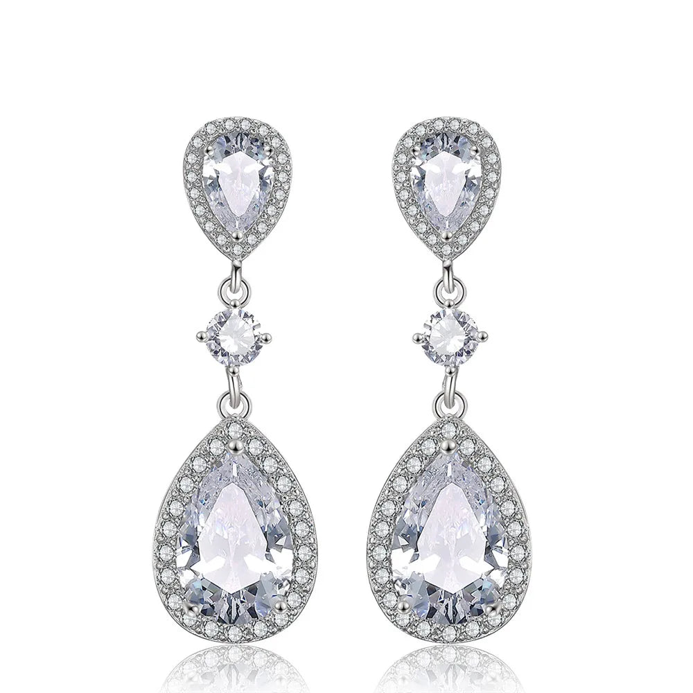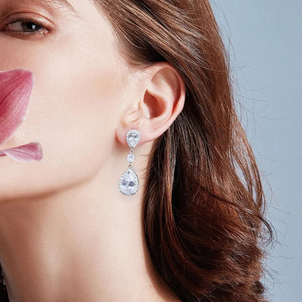 Fashion Three-layer Long Drop Earrings Zircon Water Drop Earrings Bridal Earrings Wedding for Bridesmaid Party Engagement
