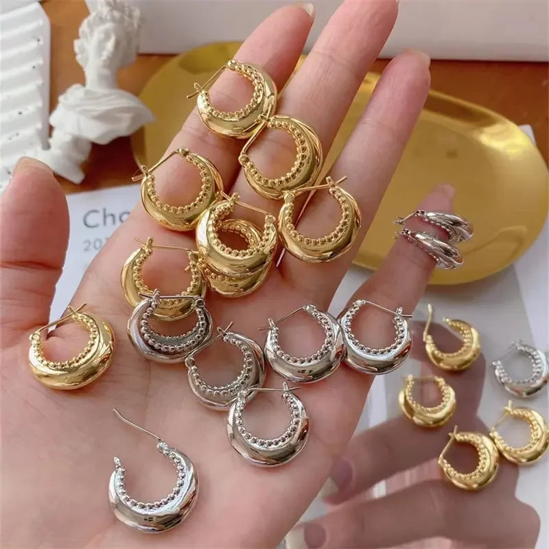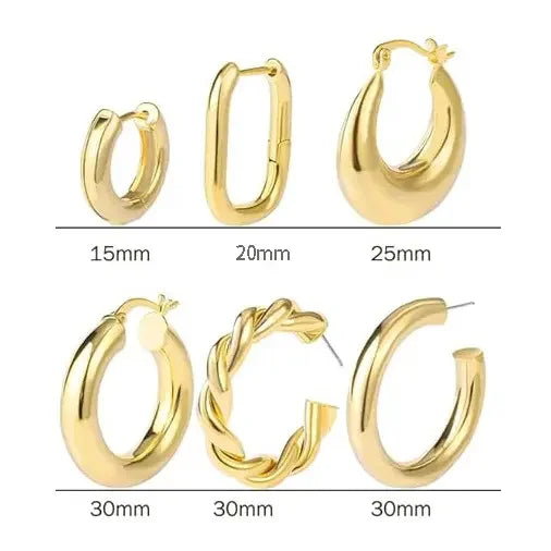 Hot Selling Gold Hoops Earrings 18k Stainless Steel Gold Plate Chunky Hoops Earrings Sets Luxury Jewelry Women