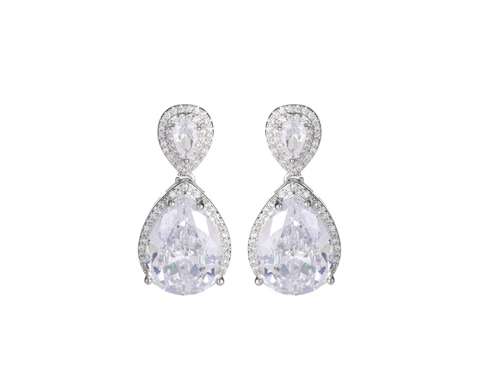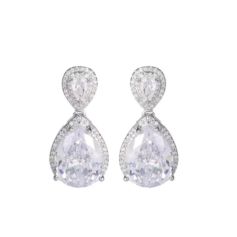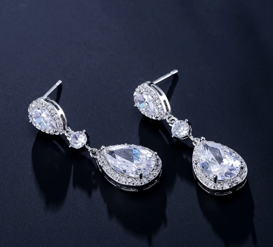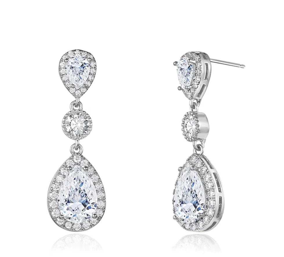 Small Sterling Silver Crystal Cubic Zirconia Simulated Diamond Rhinestone Birthstone Bridal Drop Earrings for Wedding