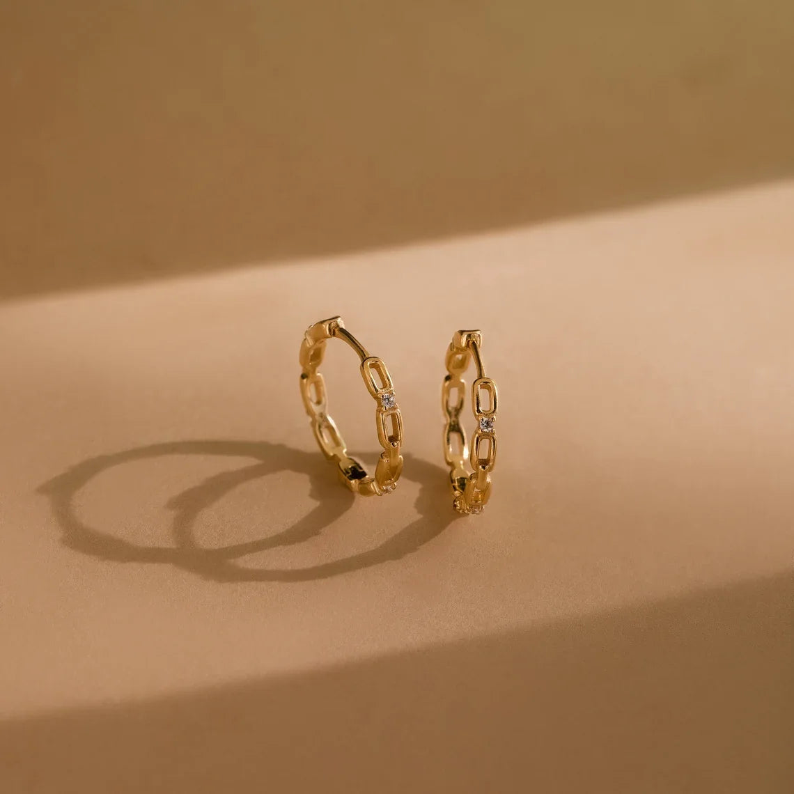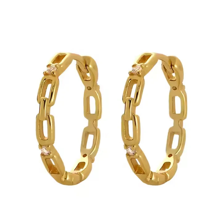 Trendy Women's Cubic Zircon Link Hoop Earrings Minimalist Gold Chain Hoop Earrings Jewelry for Everyday Wear
