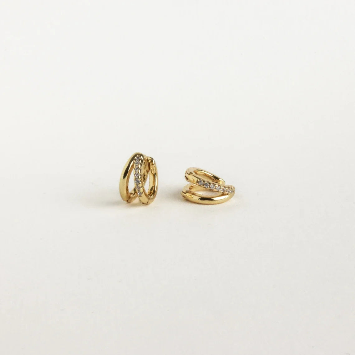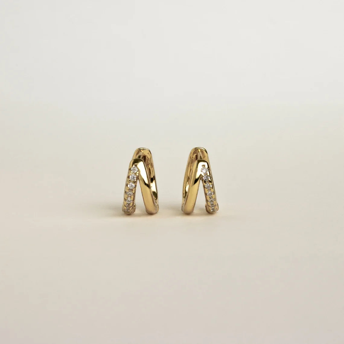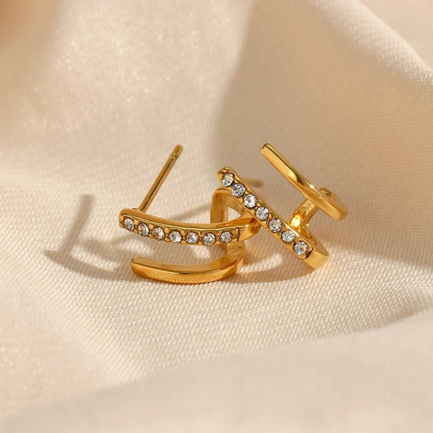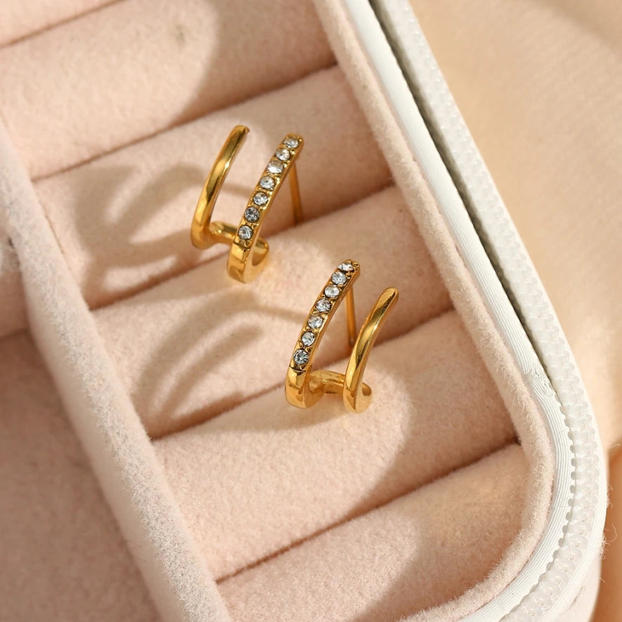 Waterproof Gold Plated Stainless Steel Zircon Double Earring Double Layer Zirconium Semi-circle Round Stud Earrings for Women