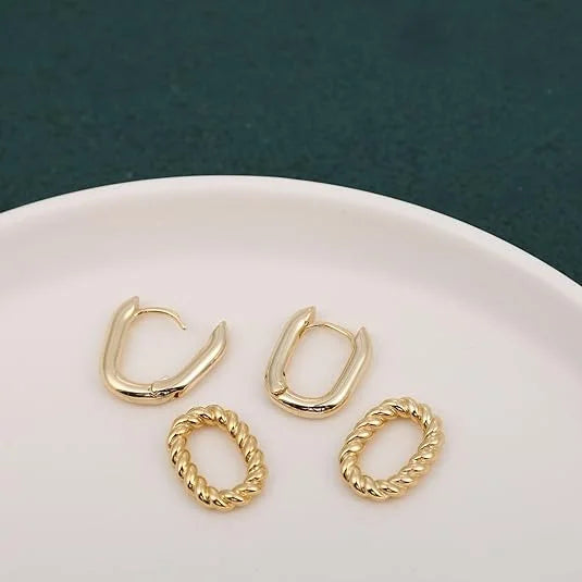 Wholesale Gold Plated U-Shape Link Huggie Hoop Earrings Double Loop Twist Rope Hoop Chunky Earring Jewelry 2024