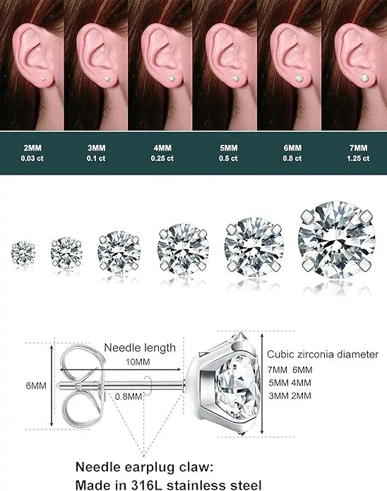 Custom Women's Jewelry 316L Surgical Stainless Steel Ear Piercing Diamond Earrings Hypoallergenic Cubic Zirconia Stud Earrings