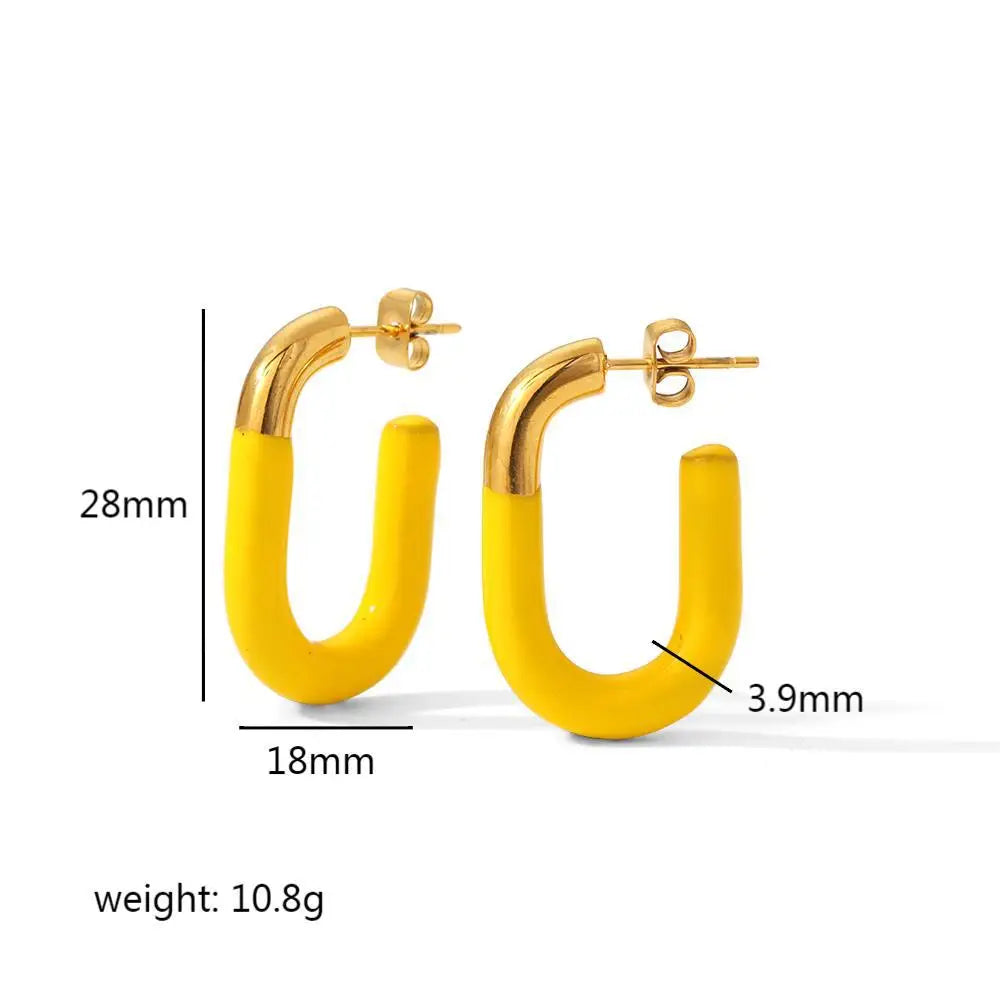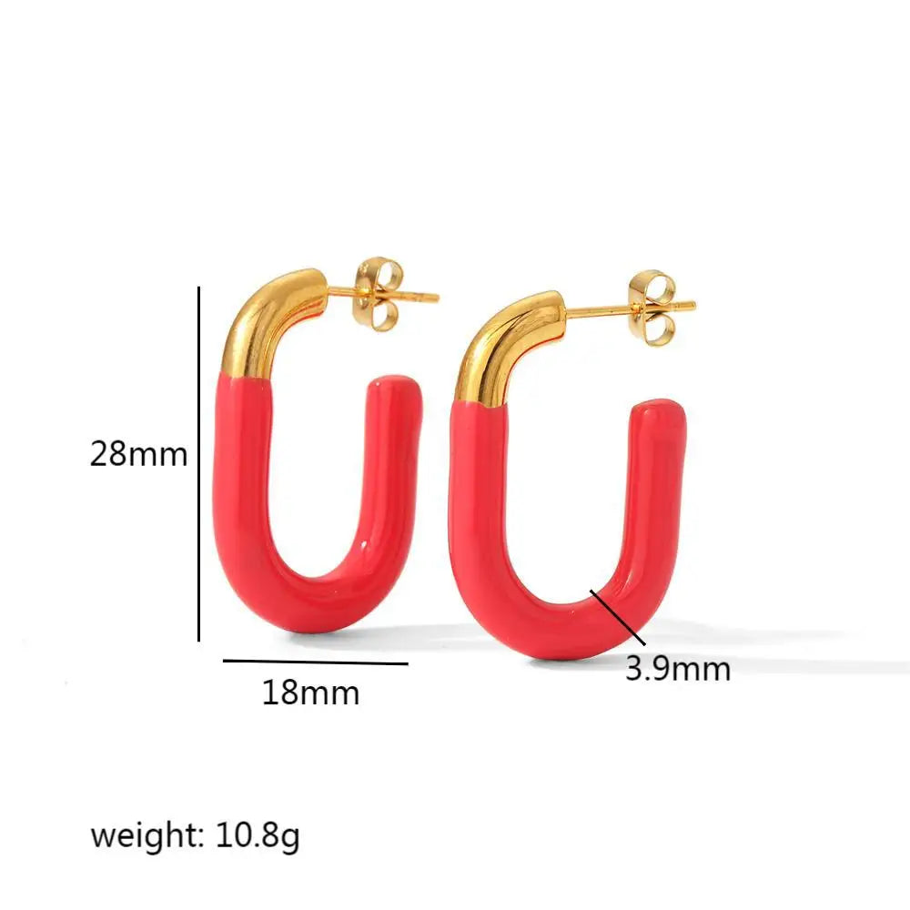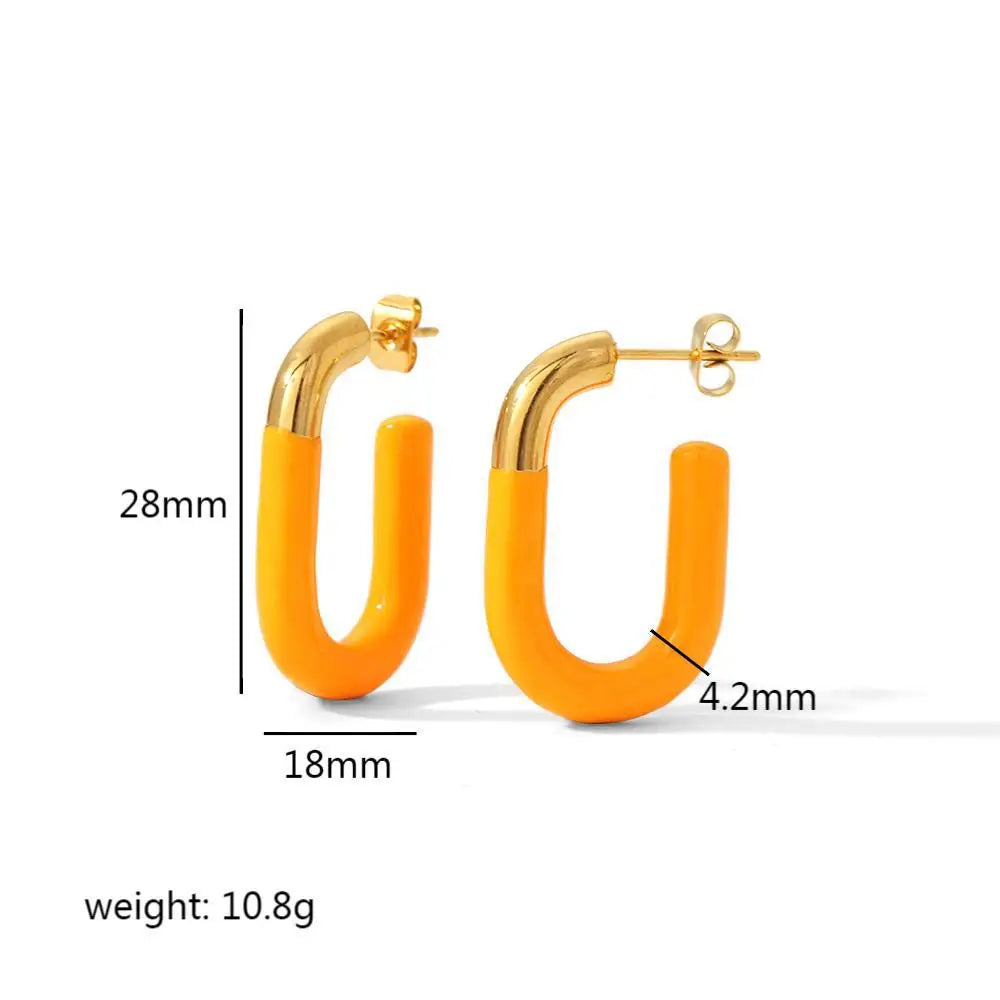 Ins Colorful Candy Earrings 18K Gold Plated Stainless Steel Geometric Square C Earrings for Women Jewelry Gift
