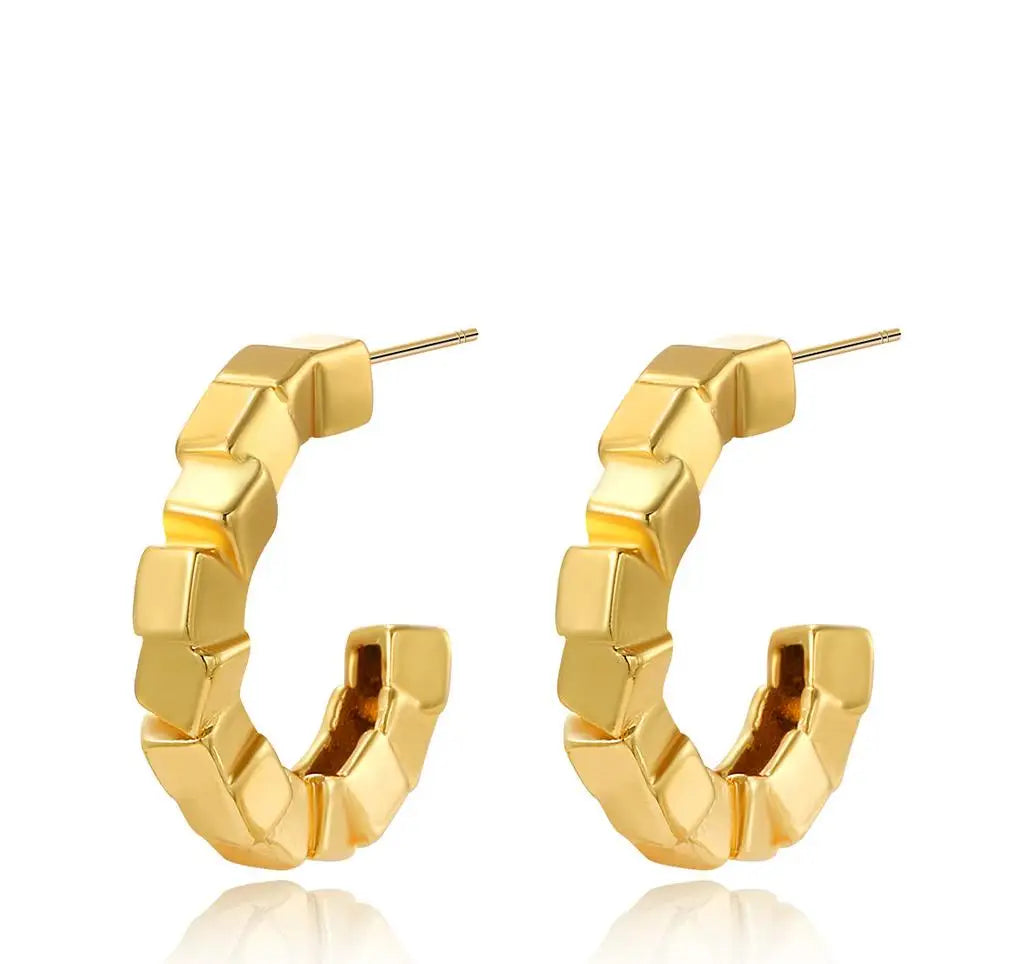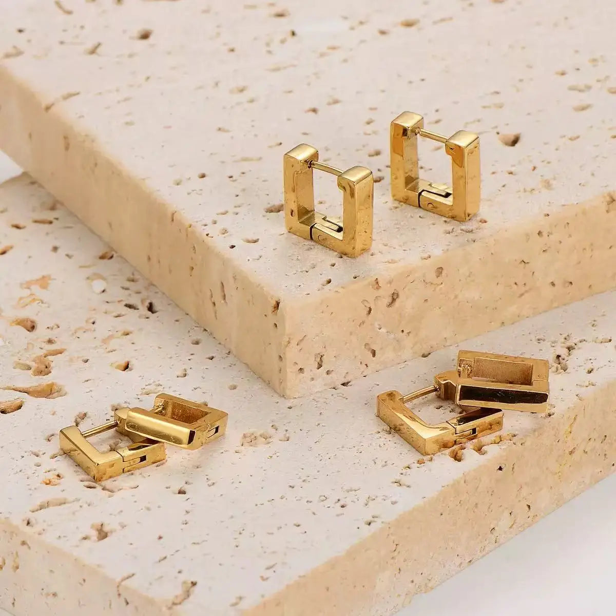 18K Gold Plated Stainless Steel Geometric Square C Earrings for Women Jewelry Gift
