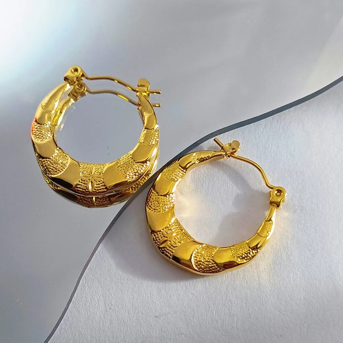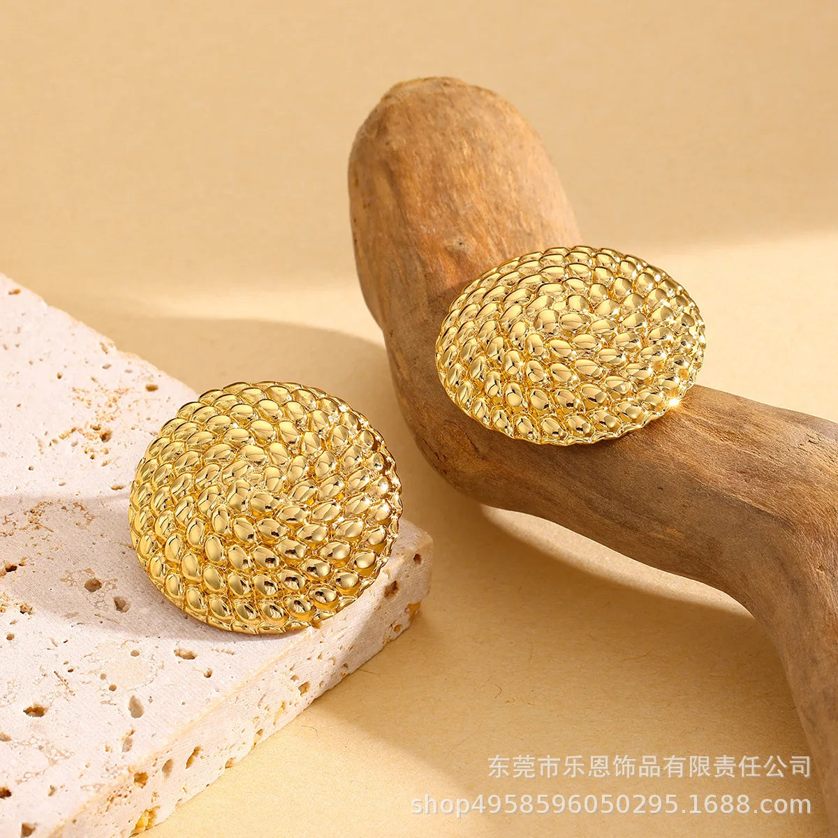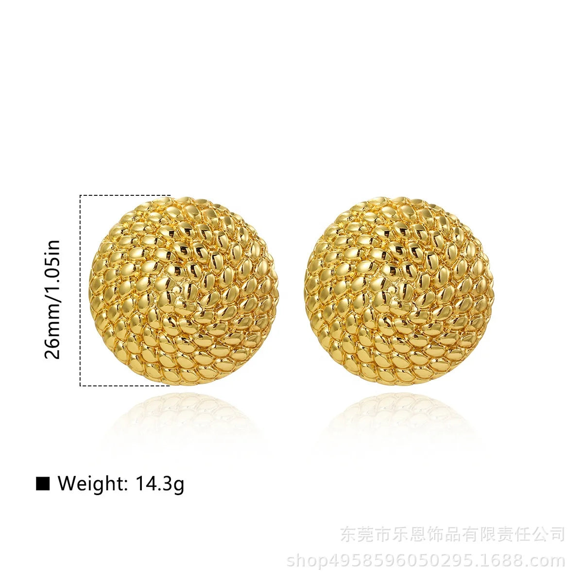 Fashion New Style 18K Gold Plated Exaggerated Earrings for Women Medieval Retro Style Metal Plaid Earrings Jewelry