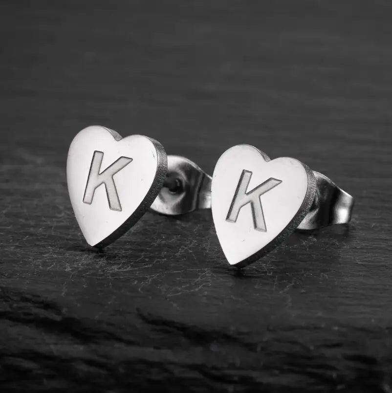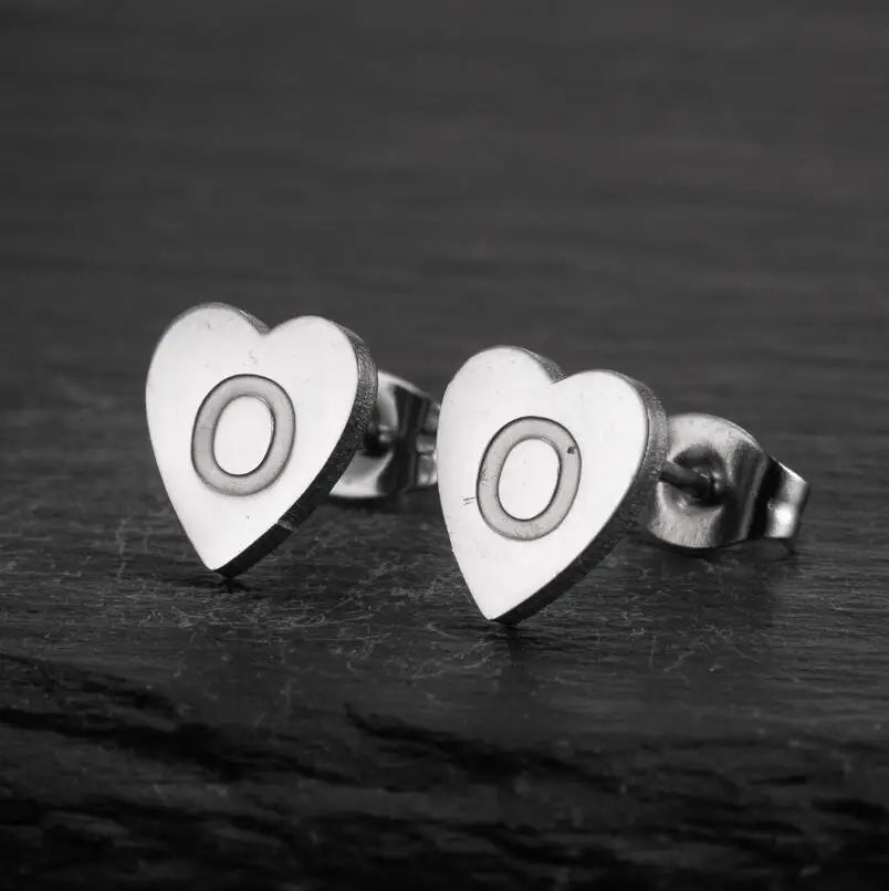 Fashion All-Purpose 18k Gold Love Heart Letter Stud Earrings Women Minimalist Vintage Style A-Z Alphabet Earrings