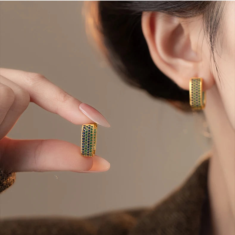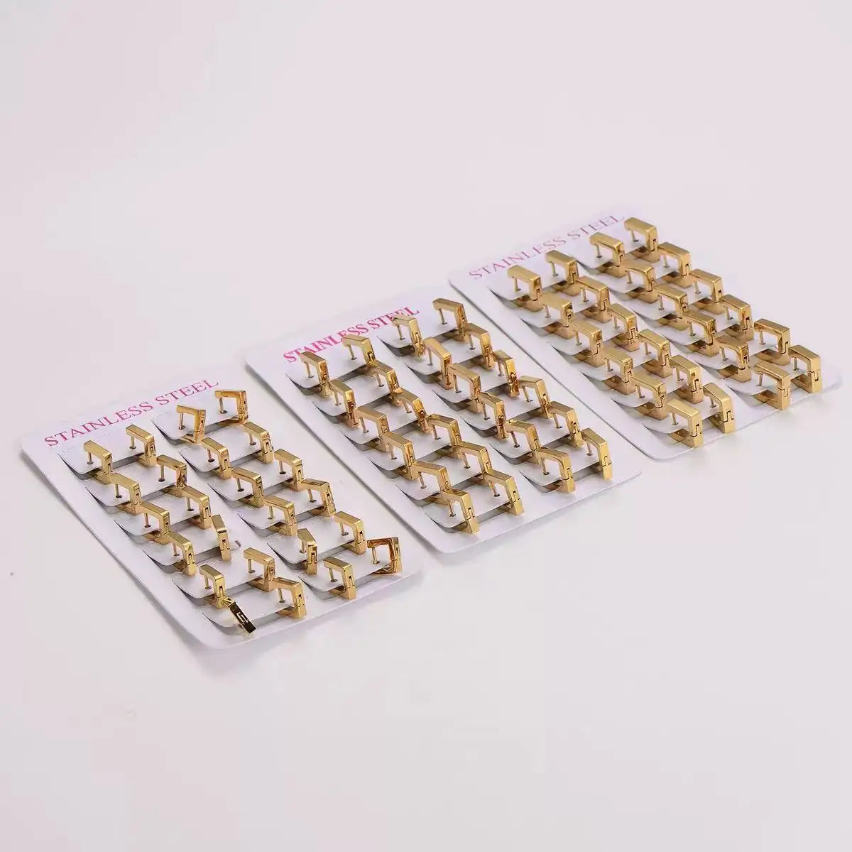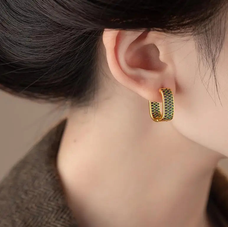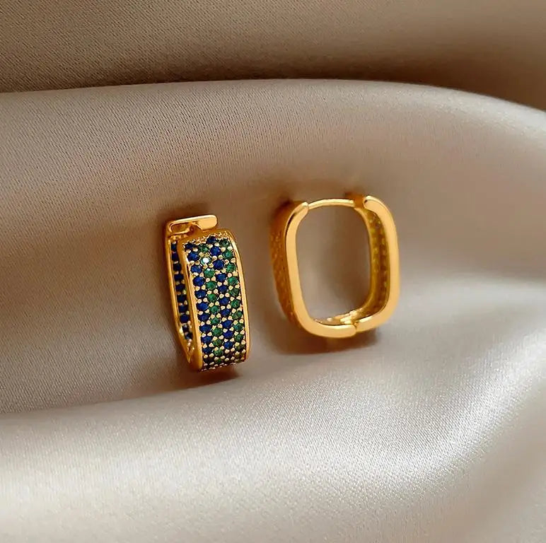 Wholesale 18K Gold Plated Geometric Square U Earrings Fashion Zircon Hoop Earings for Women Gift