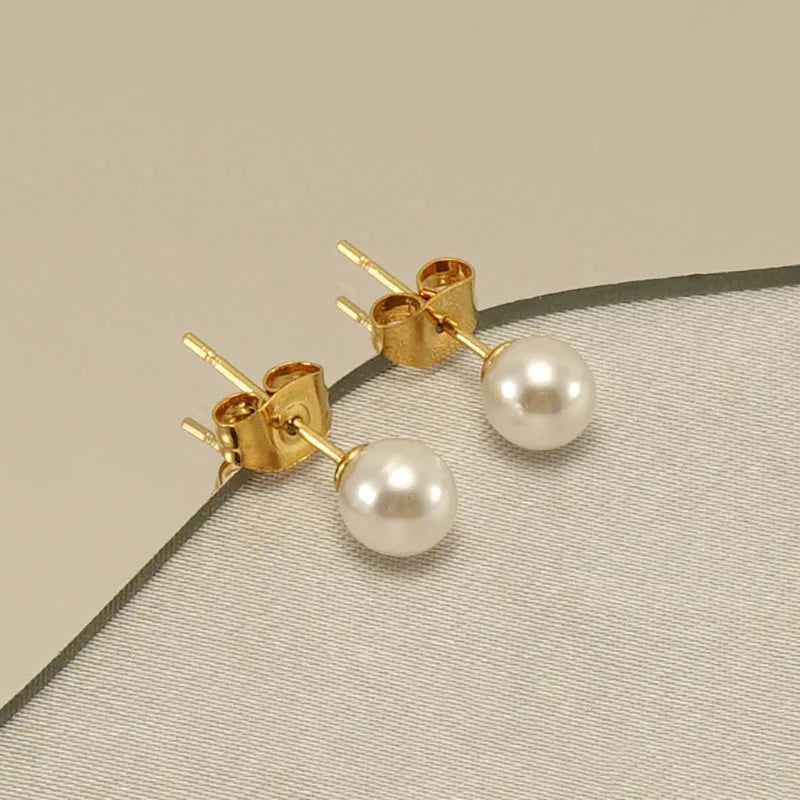 Luxury European and American Fashion Ball Earrings Simple Style Glossy Round Bead Stud Earring for Women