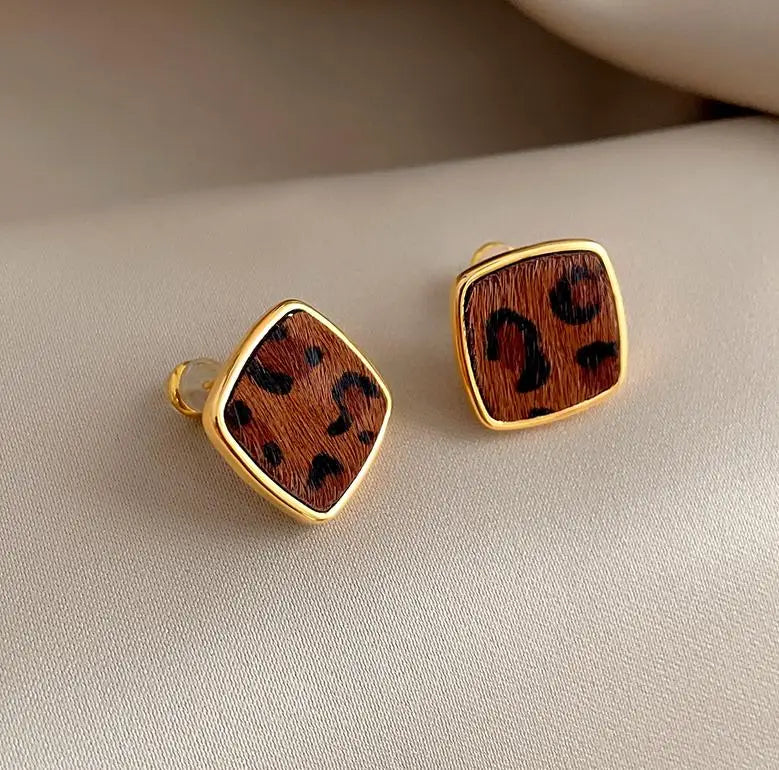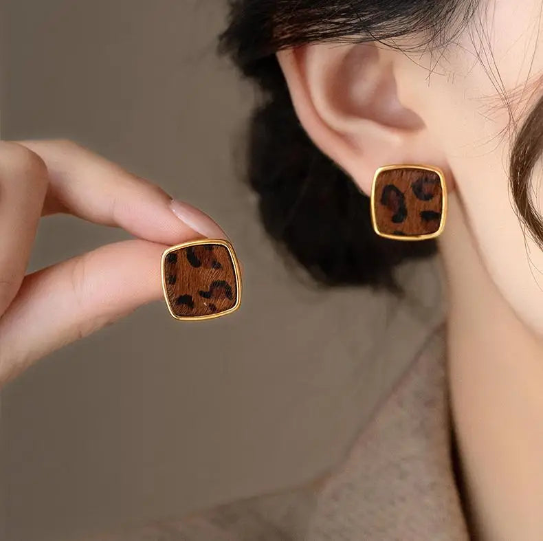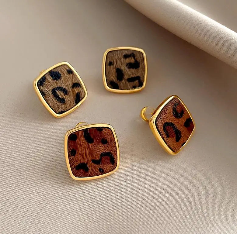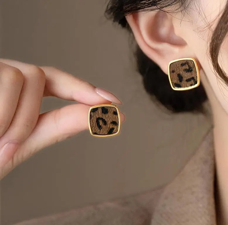 Fashion New 18K Gold Plated Leopard Square Stud Earrings for Women Gift