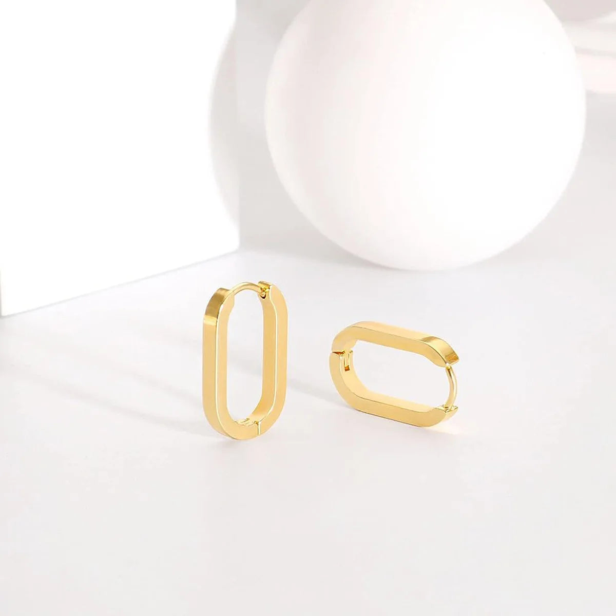 Minimalist Oval Metal Geometric Hollow Big Hoop Earrings Waterproof Stainless Steel U Shaped Hoop Earrings for Women