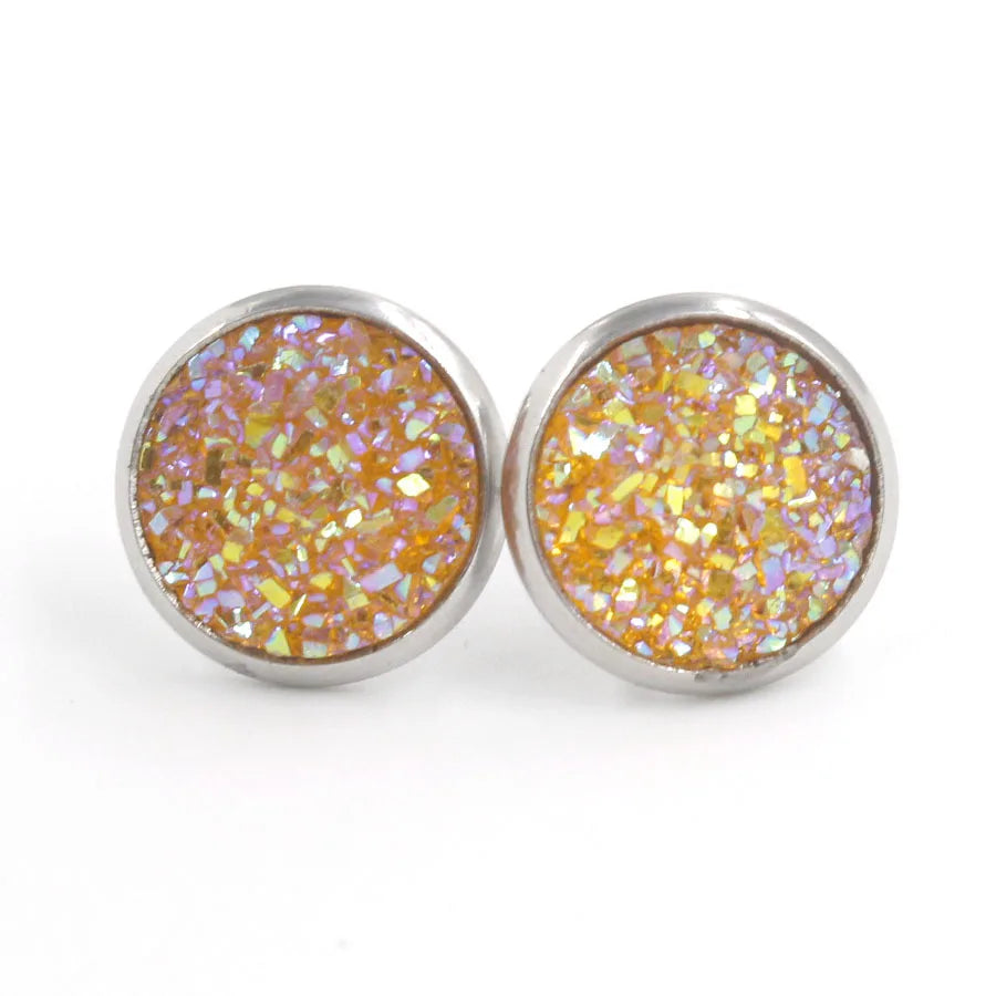 Multi Color Bling Bling Natural Stones Round Stainless Steel Full Star Shining Stud Resin for Men and Women Stud Earrings