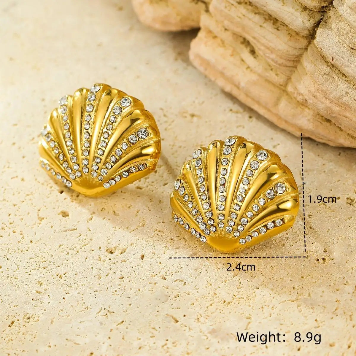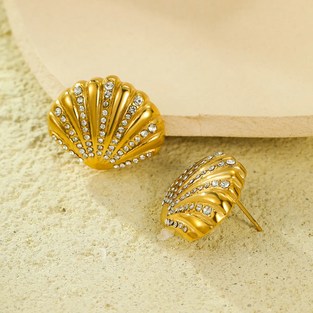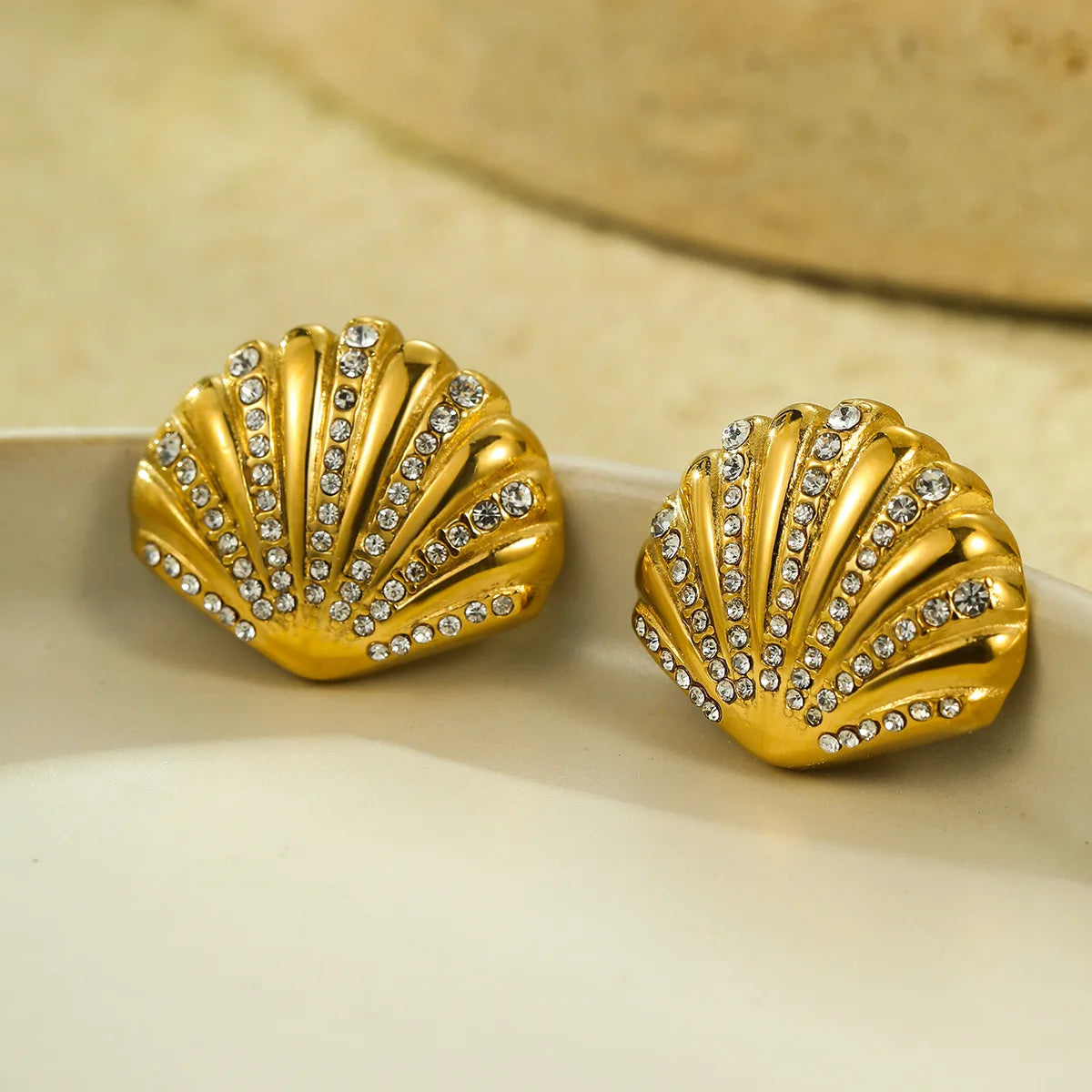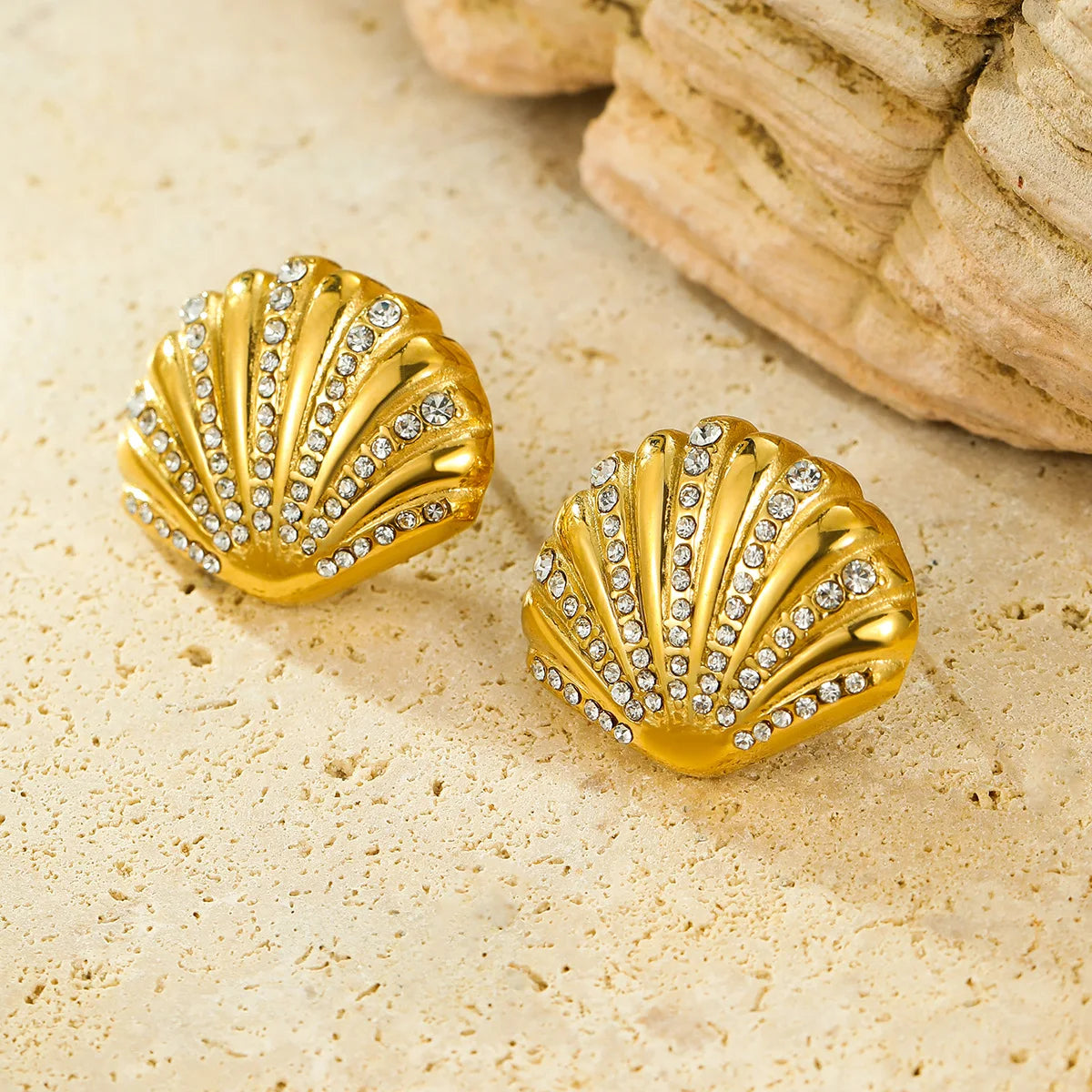 Wholesale 18K Gold Plated Stainless Steel Hypoallergenic Shell Zircon Earrings Women Girls Summer Beach Jewelry