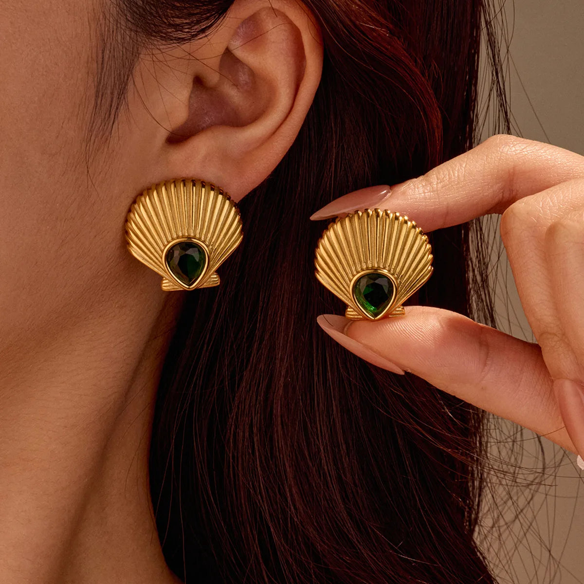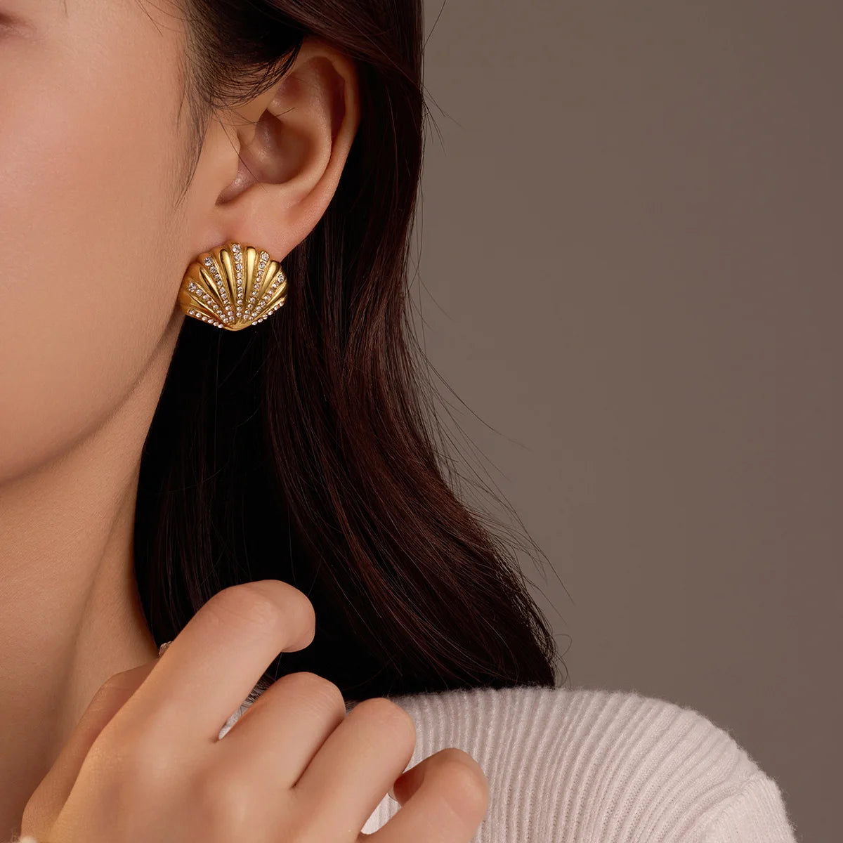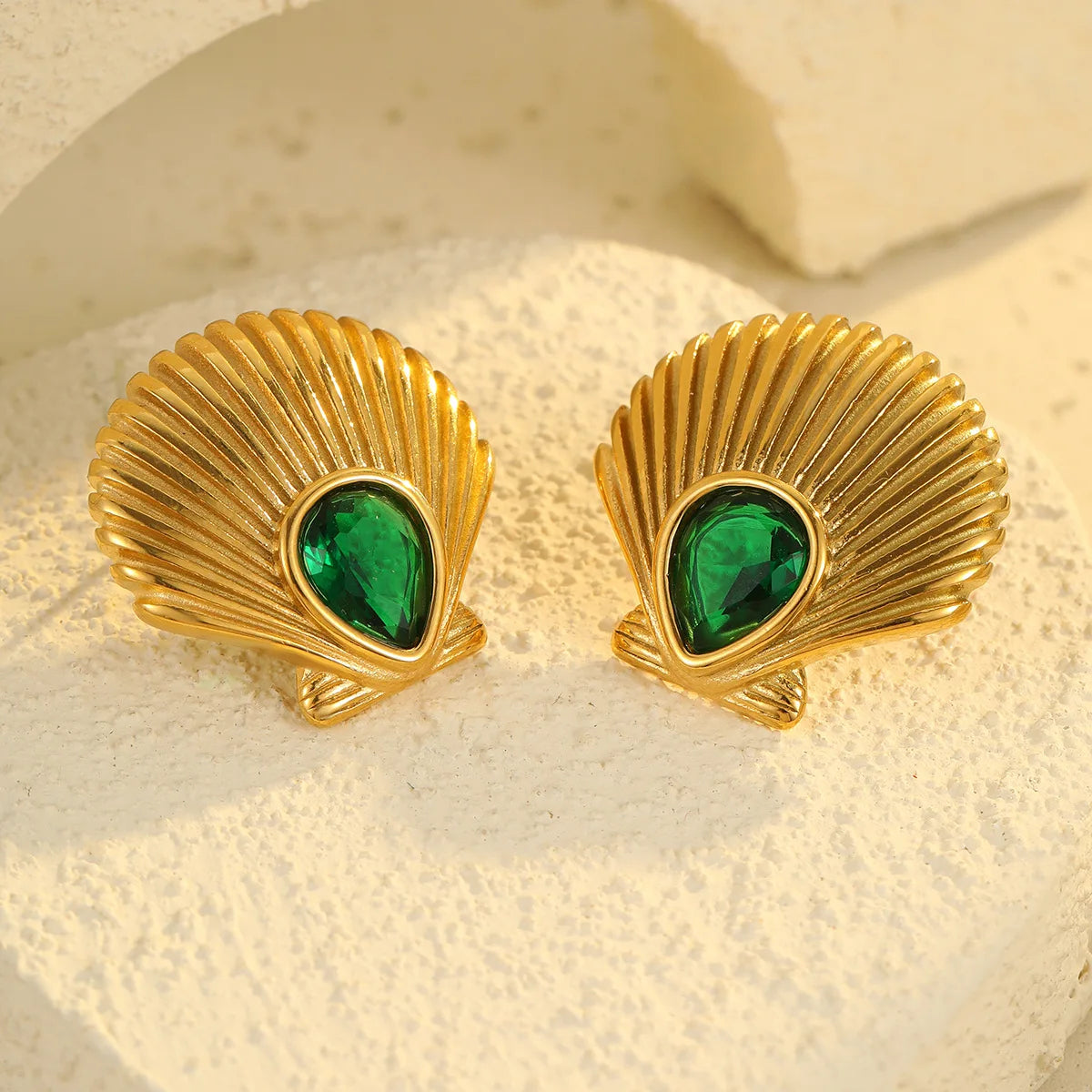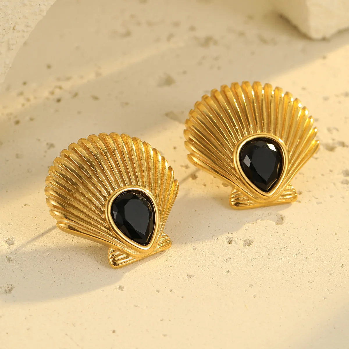 Wholesale 18K Gold Plated Stainless Steel Hypoallergenic Shell Zircon Earrings Women Girls Summer Beach Jewelry