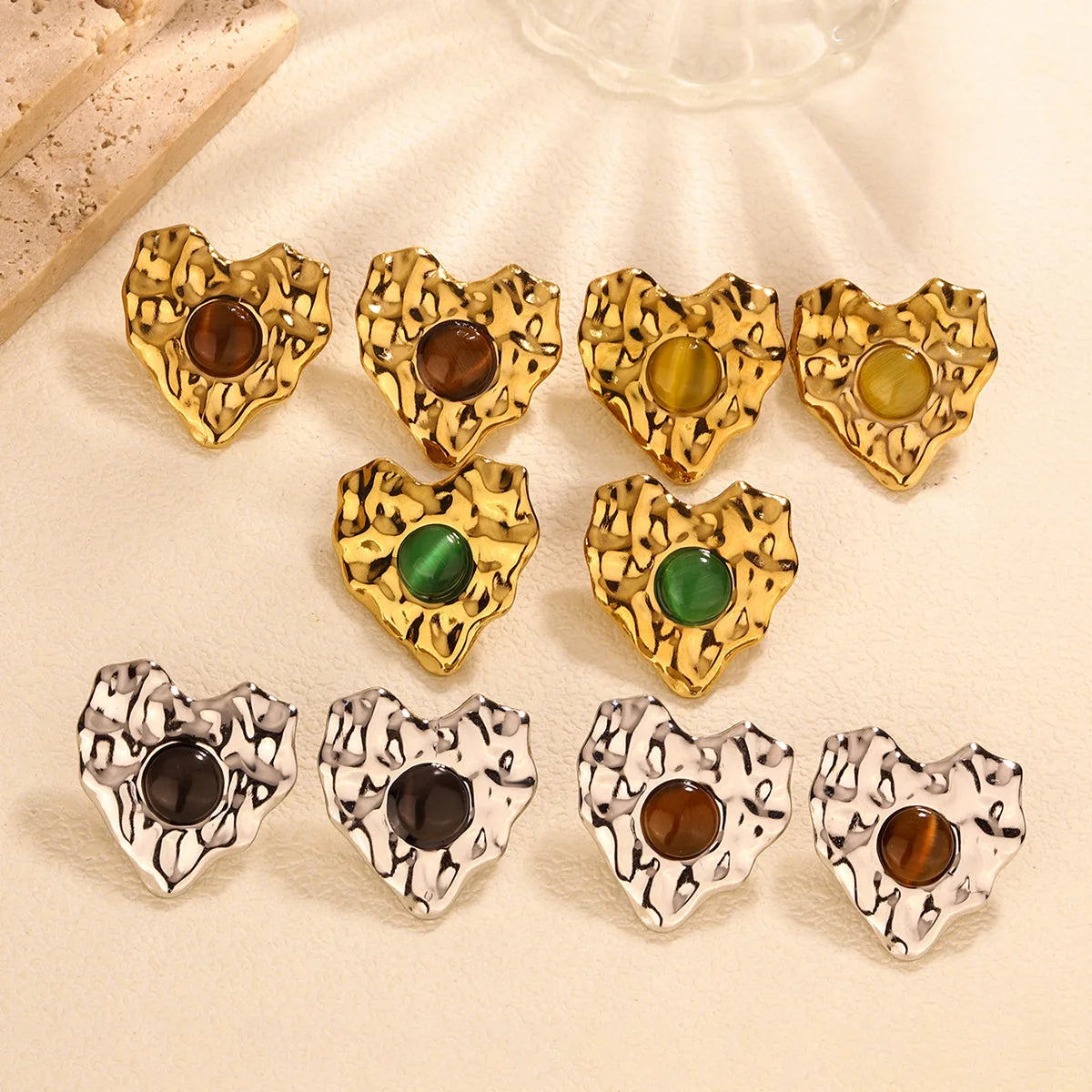 Wholesale Minimalist Earrings Stainless Stud Heart-shaped Diamond Earrings Set for Women Hot Sale Fashion Jewelry 18K Gold