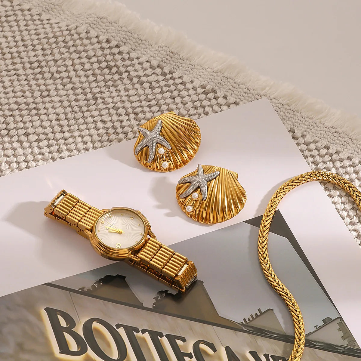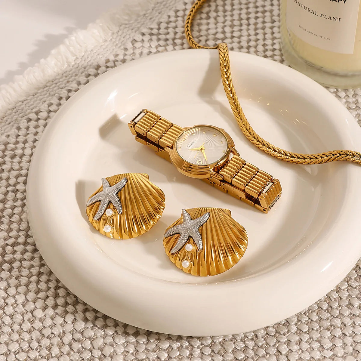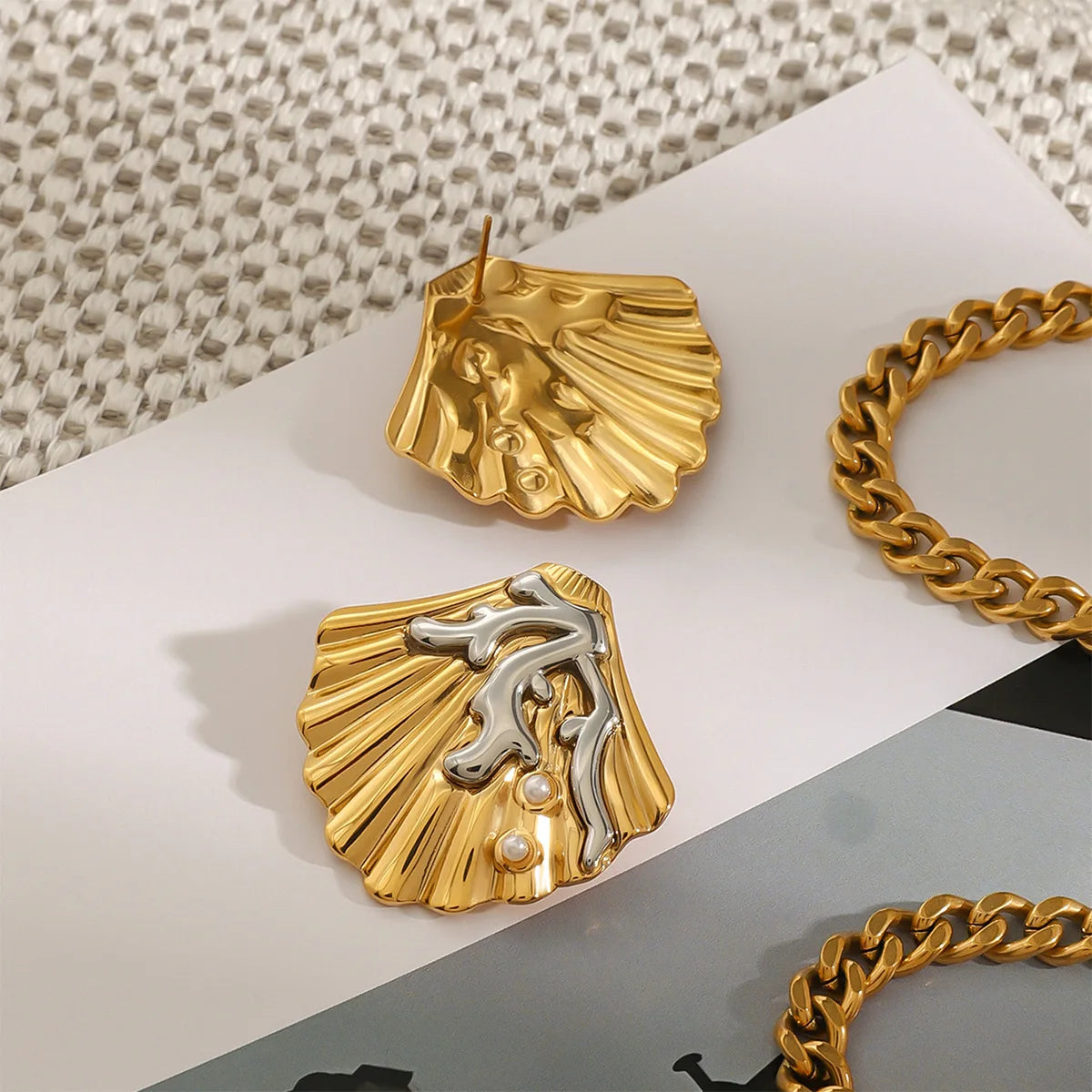 Wholesale Ocean-inspired Earrings 18K Gold Plated Stainless Steel Sea Shell Coral Stud Earrings for Women Gift