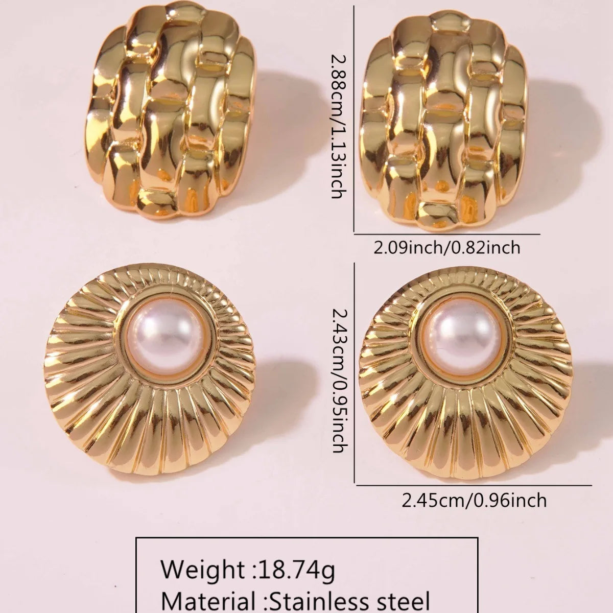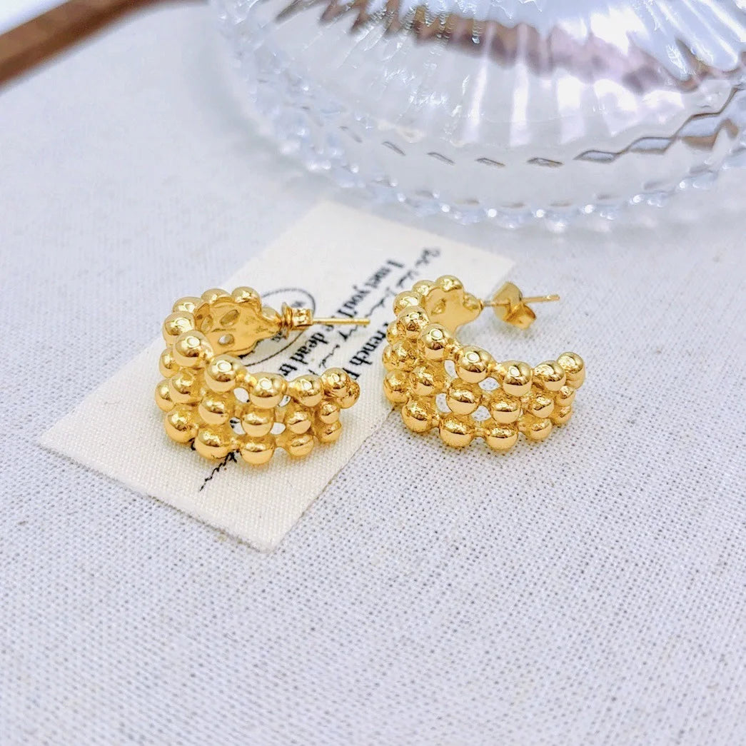 Retro Gold Plated Stainless Steel Geometric Round Vacuum Hoop Earrings Women Boho Chic Jewelry