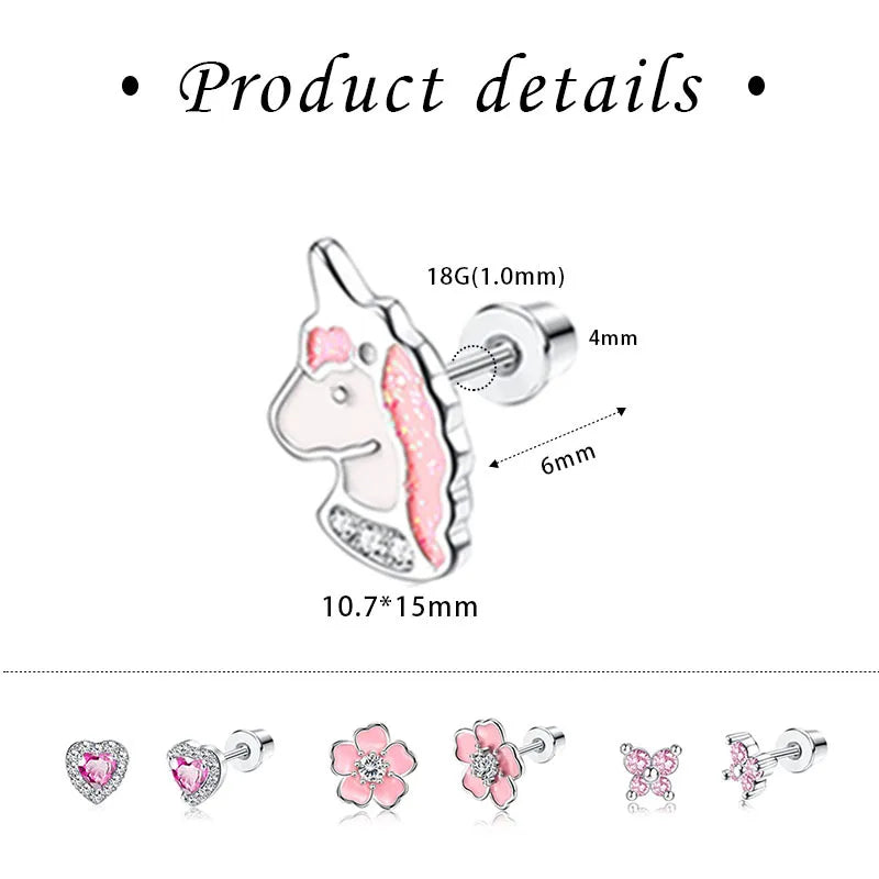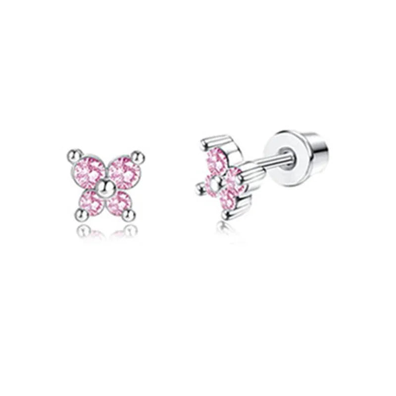 Vintage Style Silver Elegant Stud Earrings Set Cute Cartoon Flower Design for Kids Teens Girls Zircon Main Stone Perfect Gift