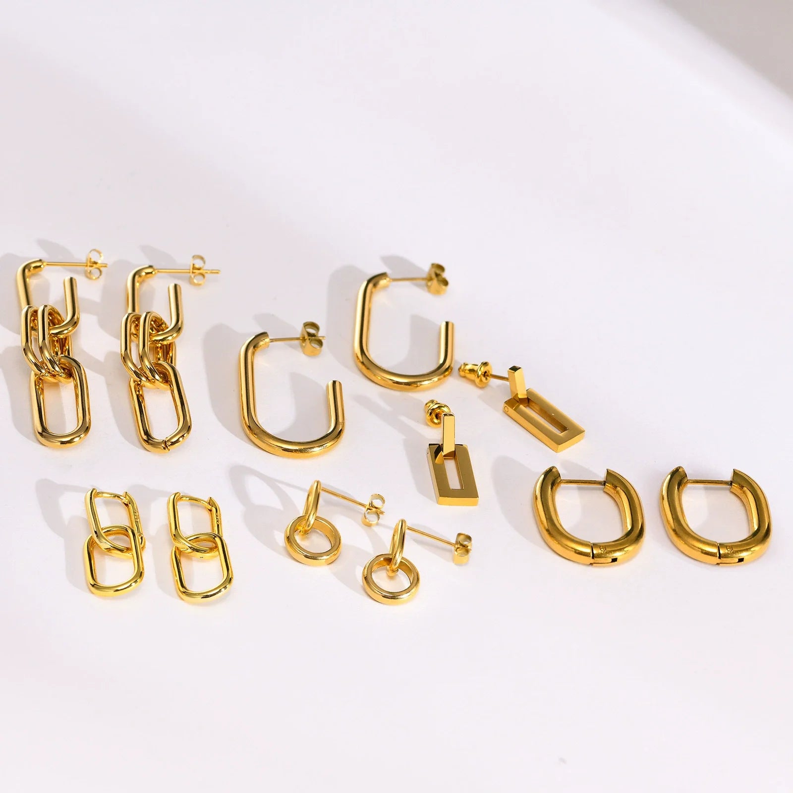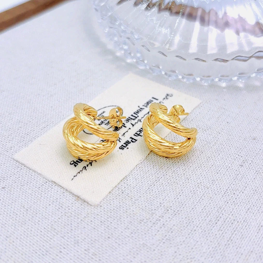 Titanium Steel Huggie Chunky Statement Earrings with Adjustable Clasp Women's Luxury Fashion Jewelry Boho Chic Minimalist Design