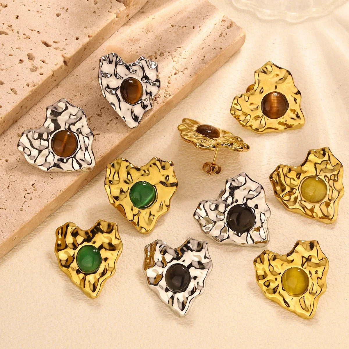 Stainless Steel Heart Shape Oil-Drip Earrings18K Gold Plated Titanium Women's Fashion Jewelry