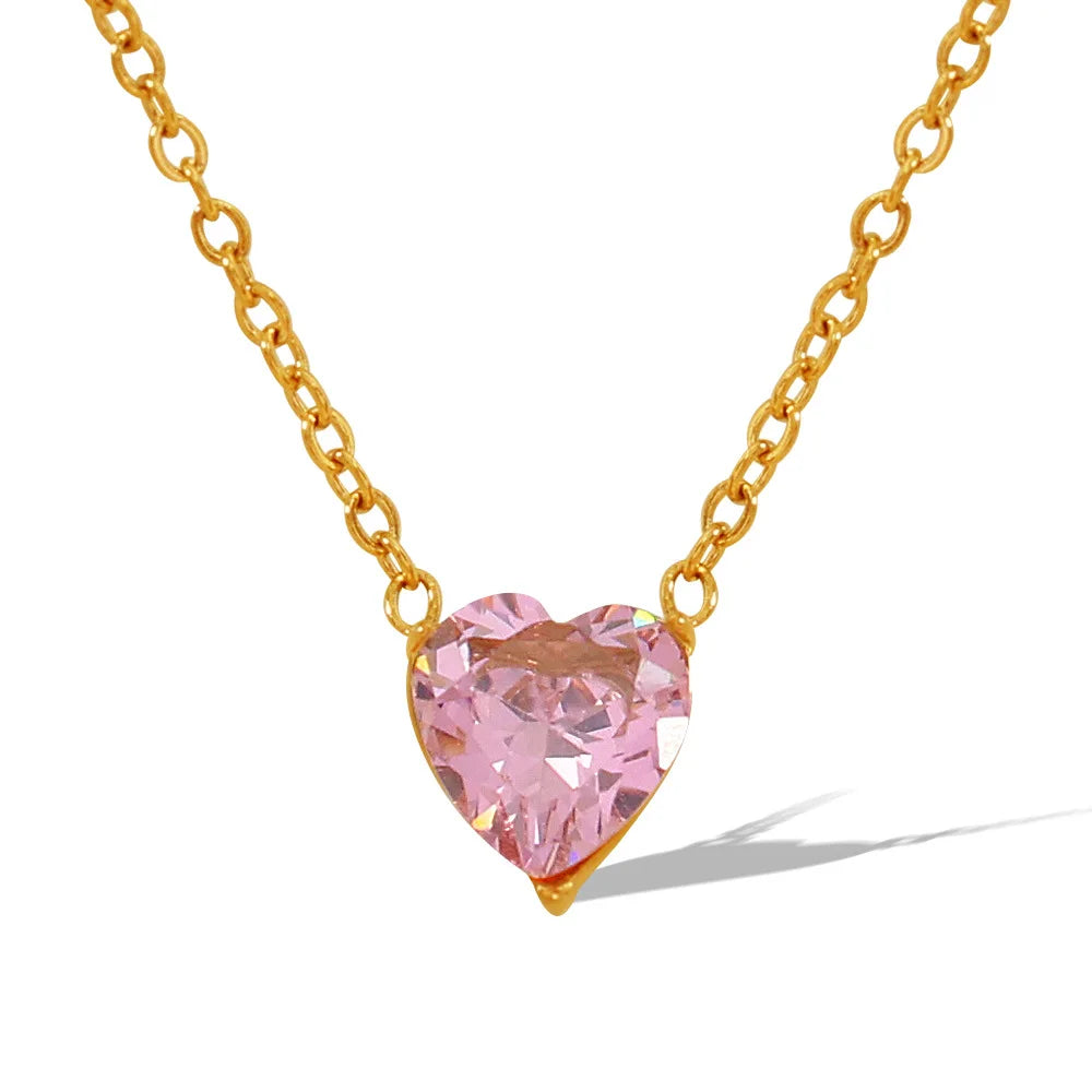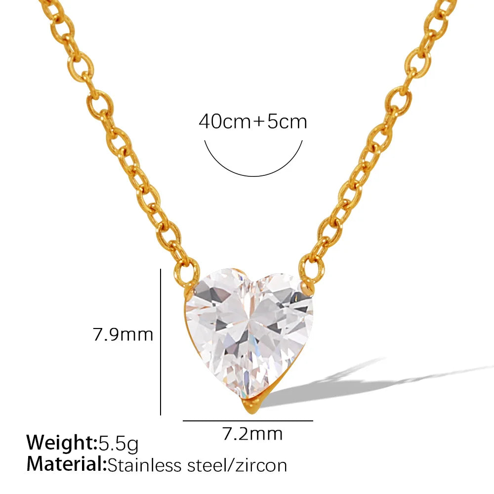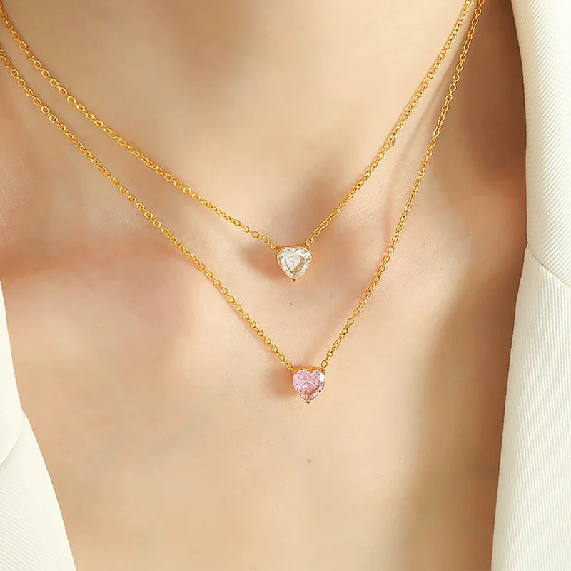 Sale Hypoallergenic Stainless Steel Heart Pendant Necklace with Cubic Zirconia Women's Fashion Jewelry Wholesale Bulk