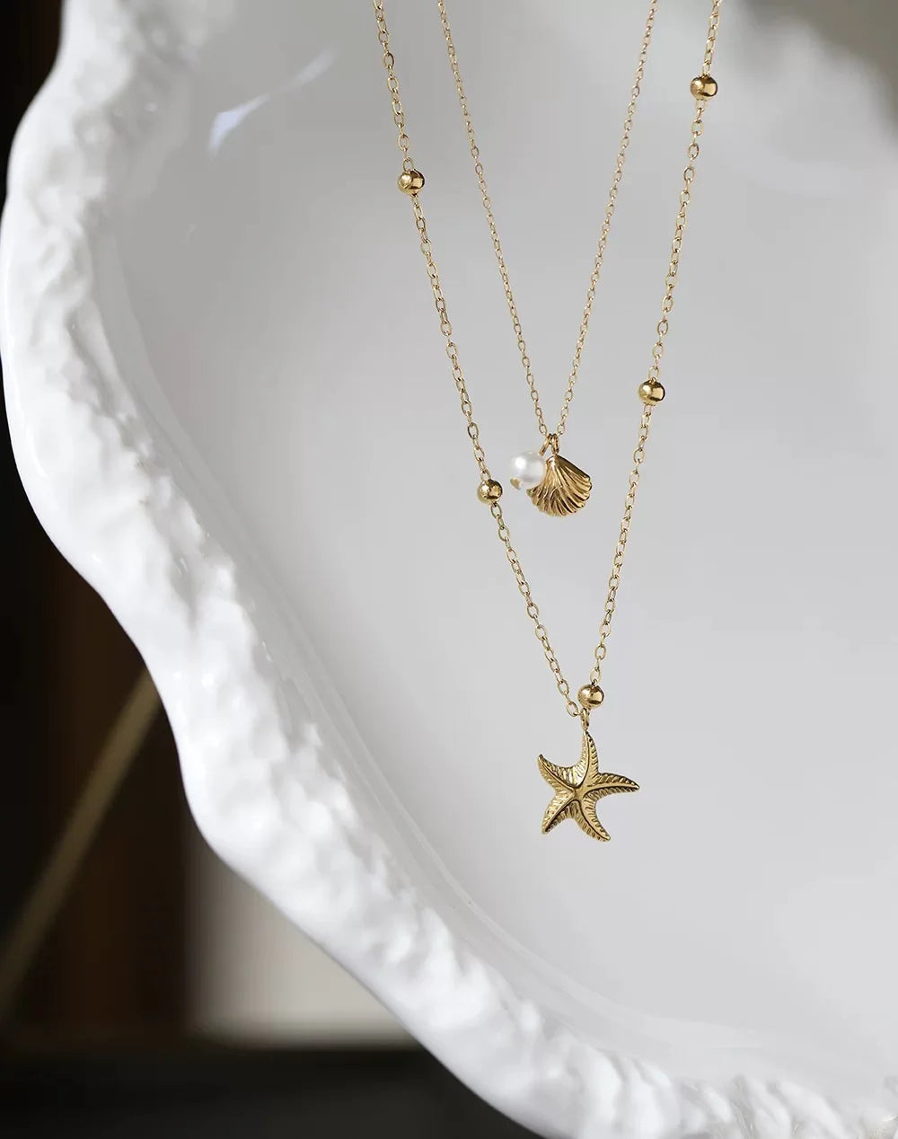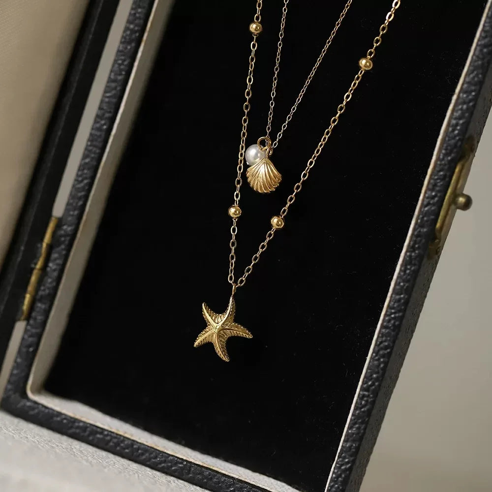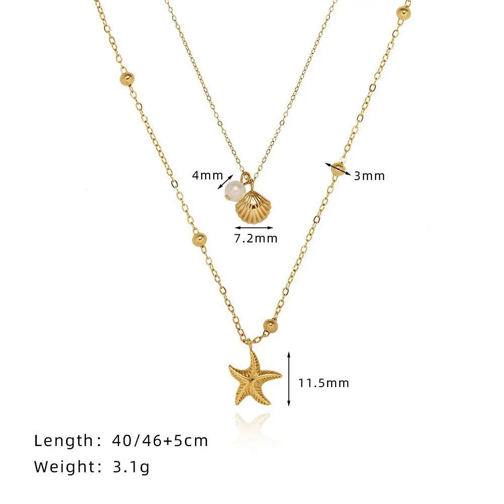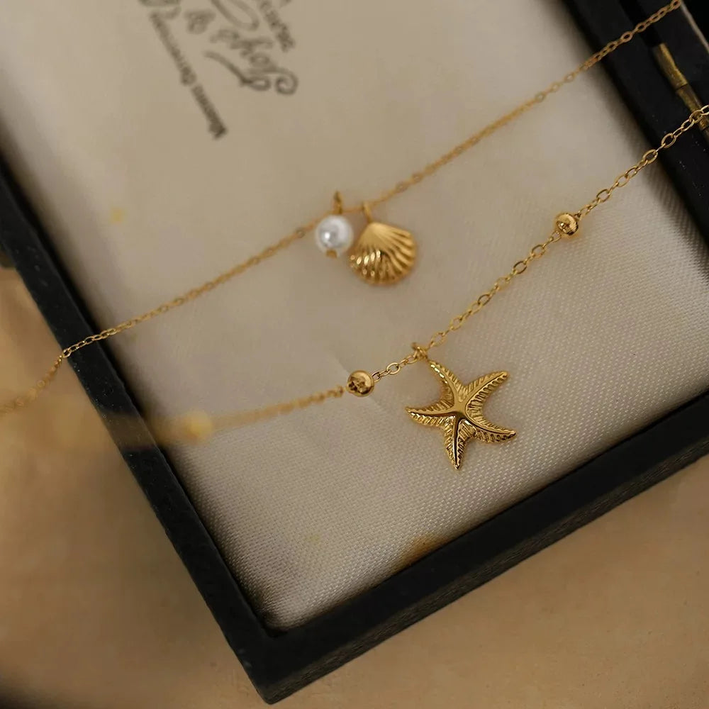 Sale Stainless Steel 18k Gold Plated Starfish Shell Pearl Necklace Ocean Theme Necklace for Women 2025 Summer Trend
