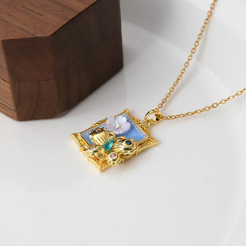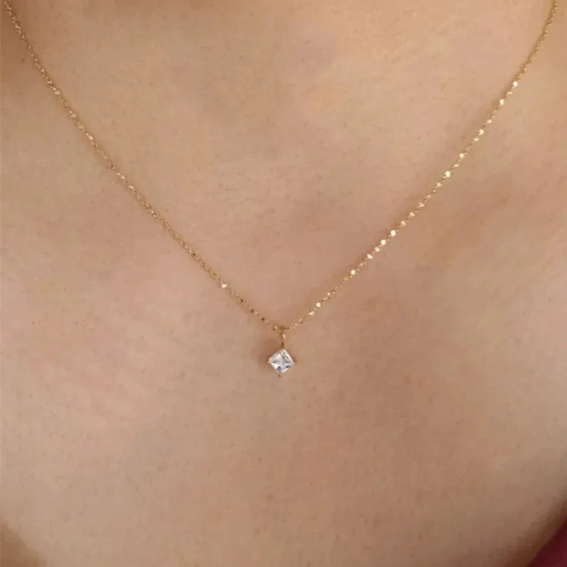 Sale Hypoallergenic Stainless Steel Single Diamond Square Zircon Starry Sky Necklace for Women's Fashion Jewelry Wholesale Bulk