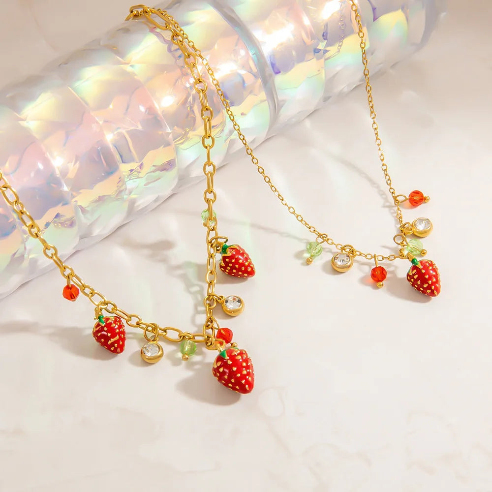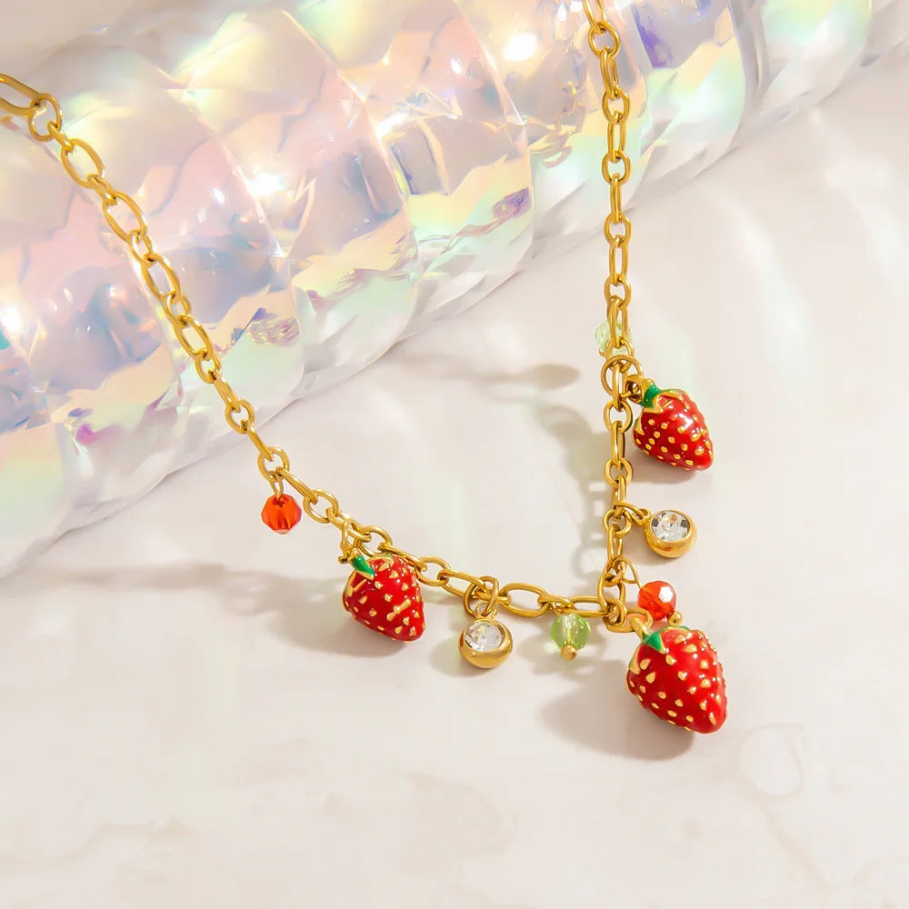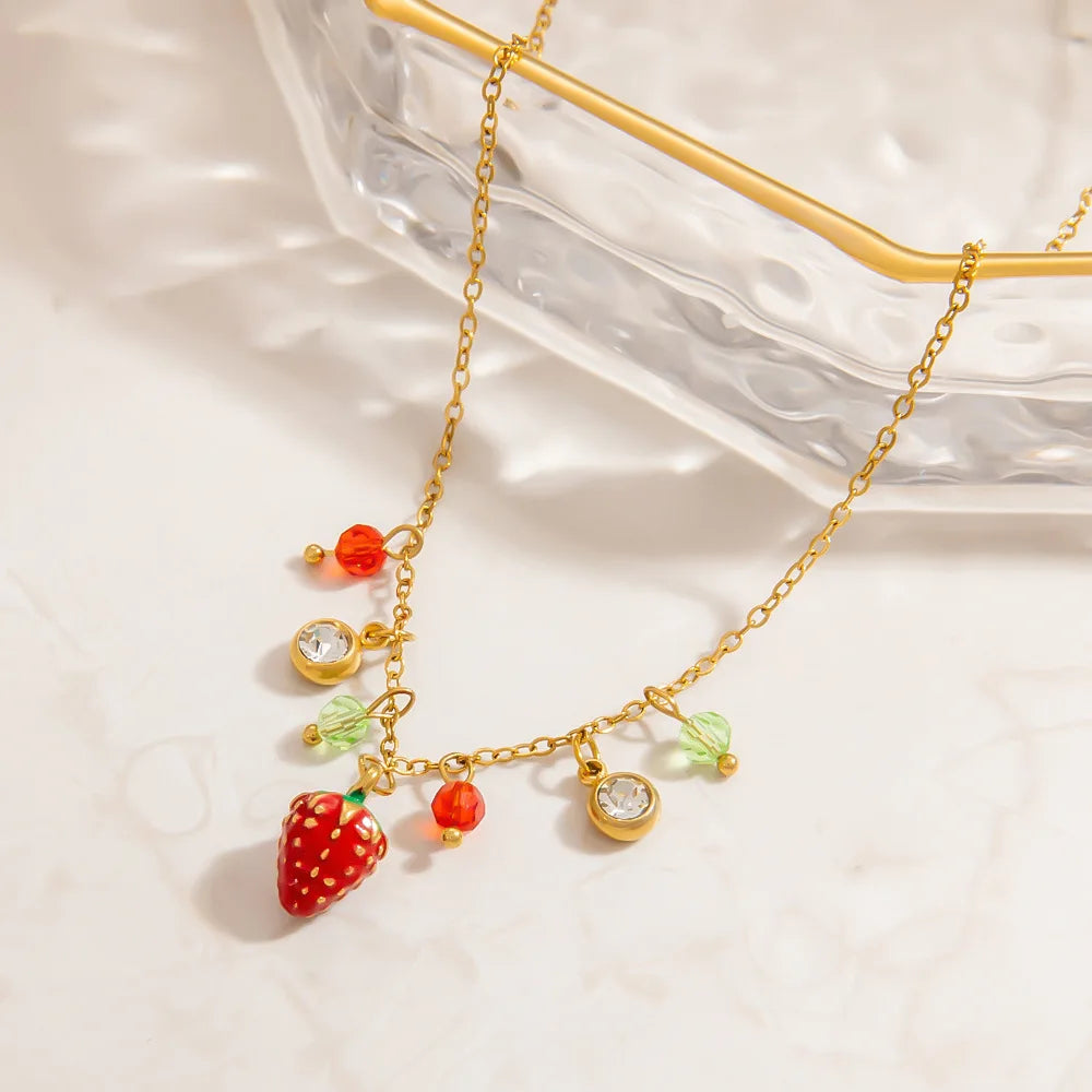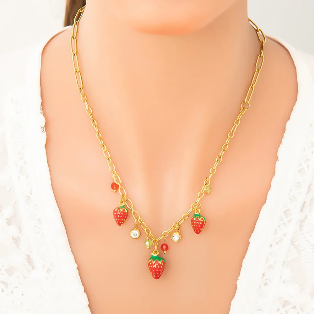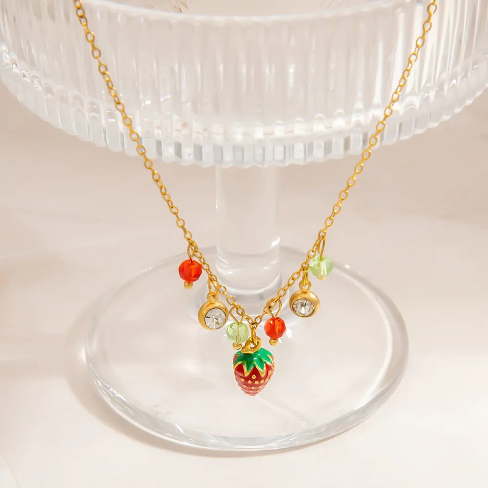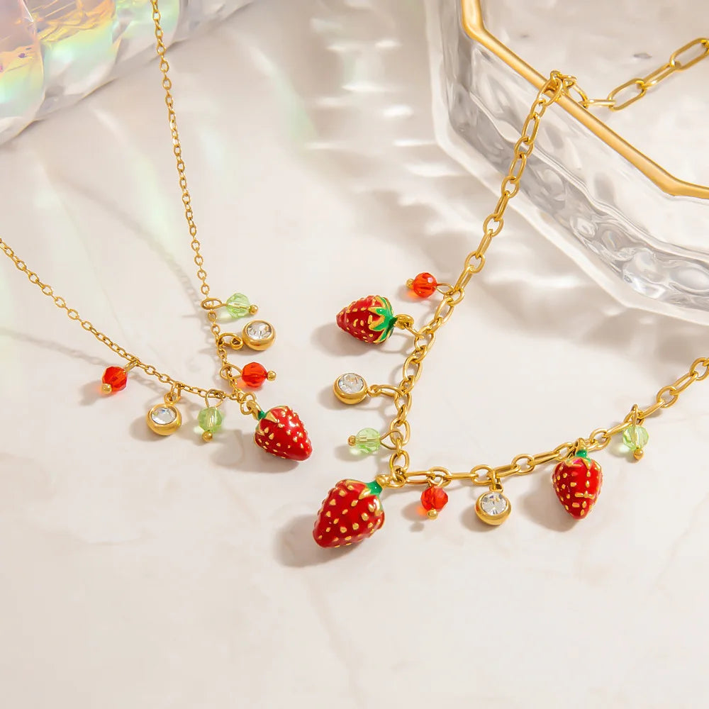 Sale Wholesale Stainless Steel Strawberry Zircon Necklace Elegant Fruit Jewelry for Women Parties Gifts