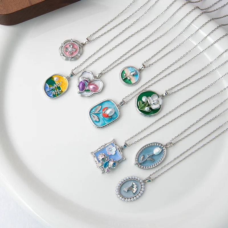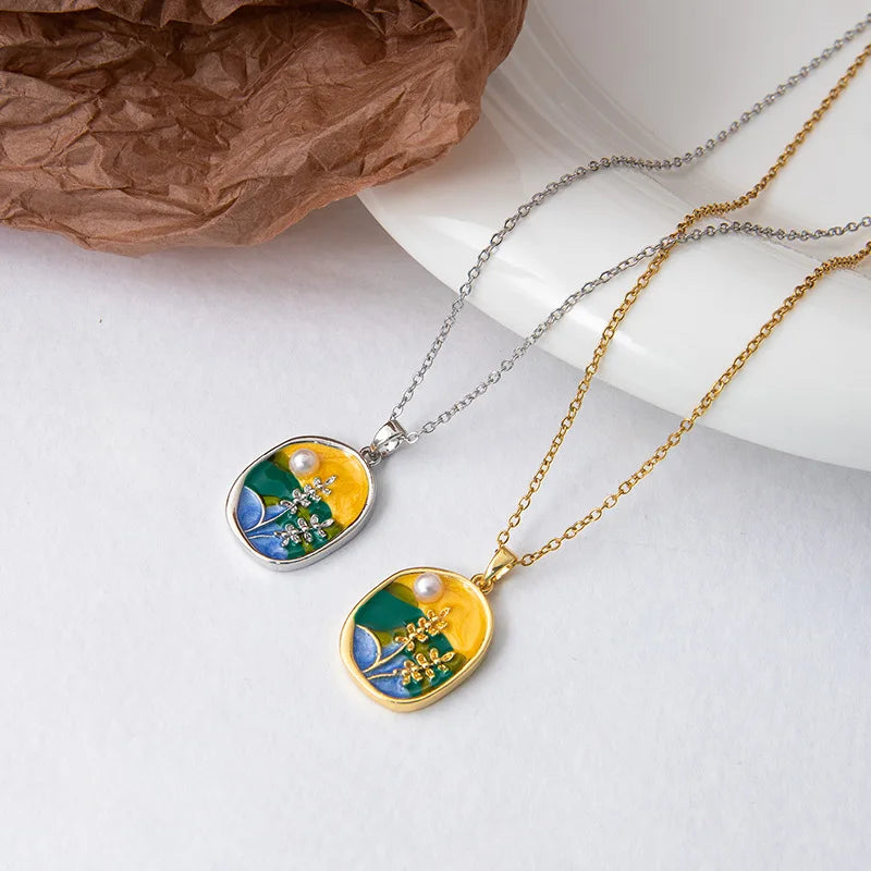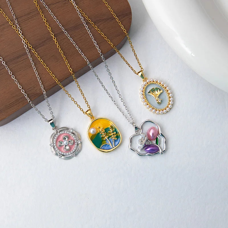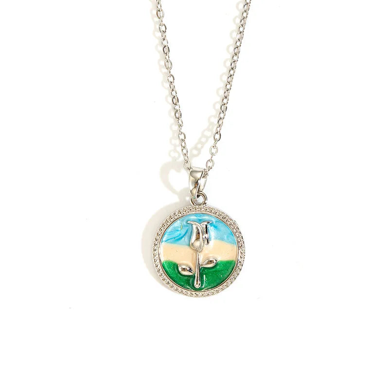 Sale Oil Painting Style Contrasting Color Three-dimensional Enamel Flower Clavicle Chain Necklace for Women Gift