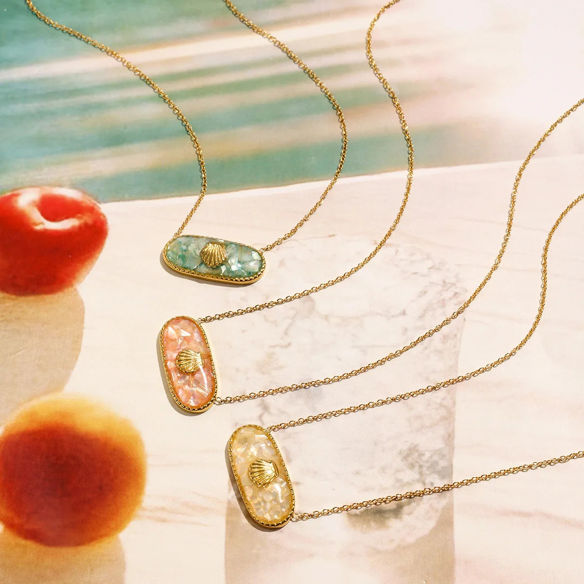 Sale Stainless Steel 18k Gold Plated Green Beaded Shell Necklace Marine Theme Necklace for Women 2025 Summer Trend