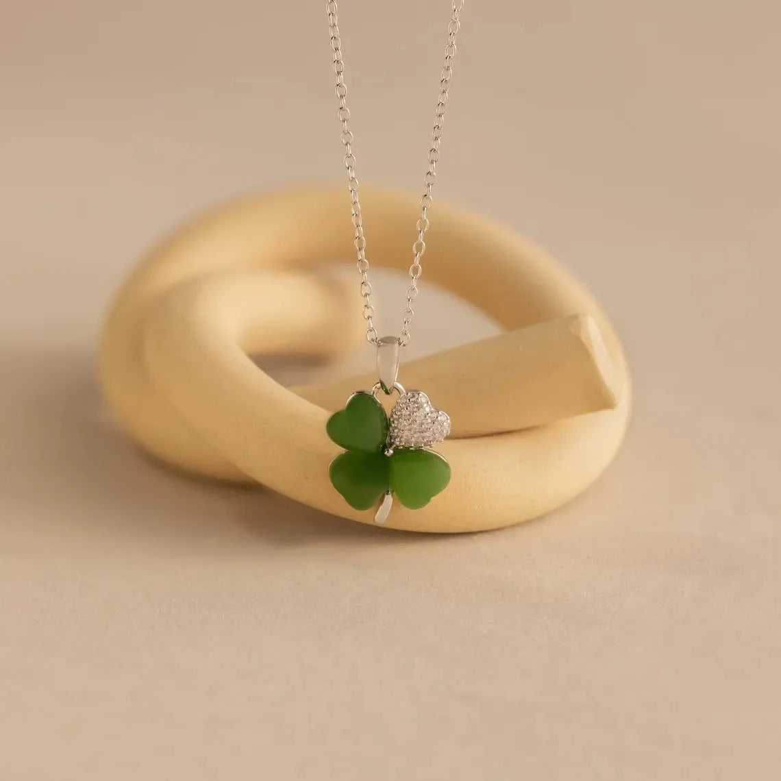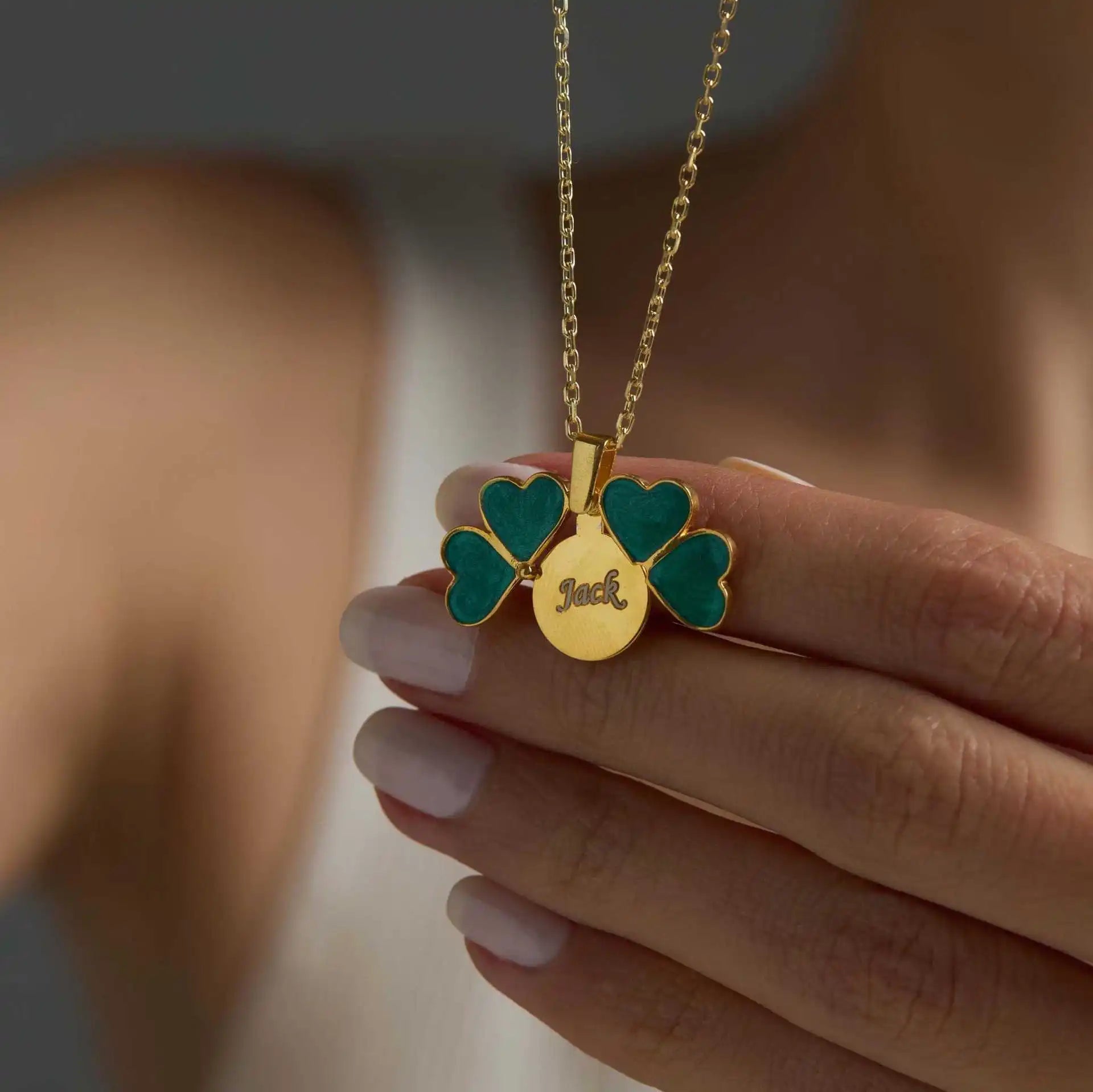 Wholesale Custom Stainless Steel Necklace Green Clover Necklaces for Women Personalized Hidden Secret Message Necklaces