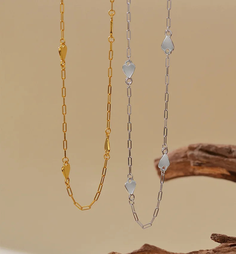 Minimalist 925 Sterling Silver Heart Handmade Waterproof Luxury 18k Gold Plated Chain Necklace for Lovers Jewelry Gift