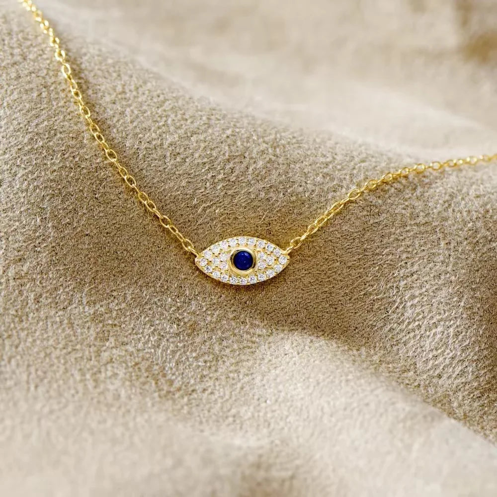 Fashion Fine Jewelry S925 Silver Necklace 18k Gold Plated Blue Eye Zircon Necklace for Women