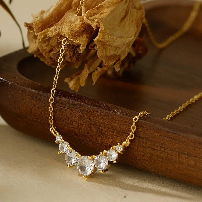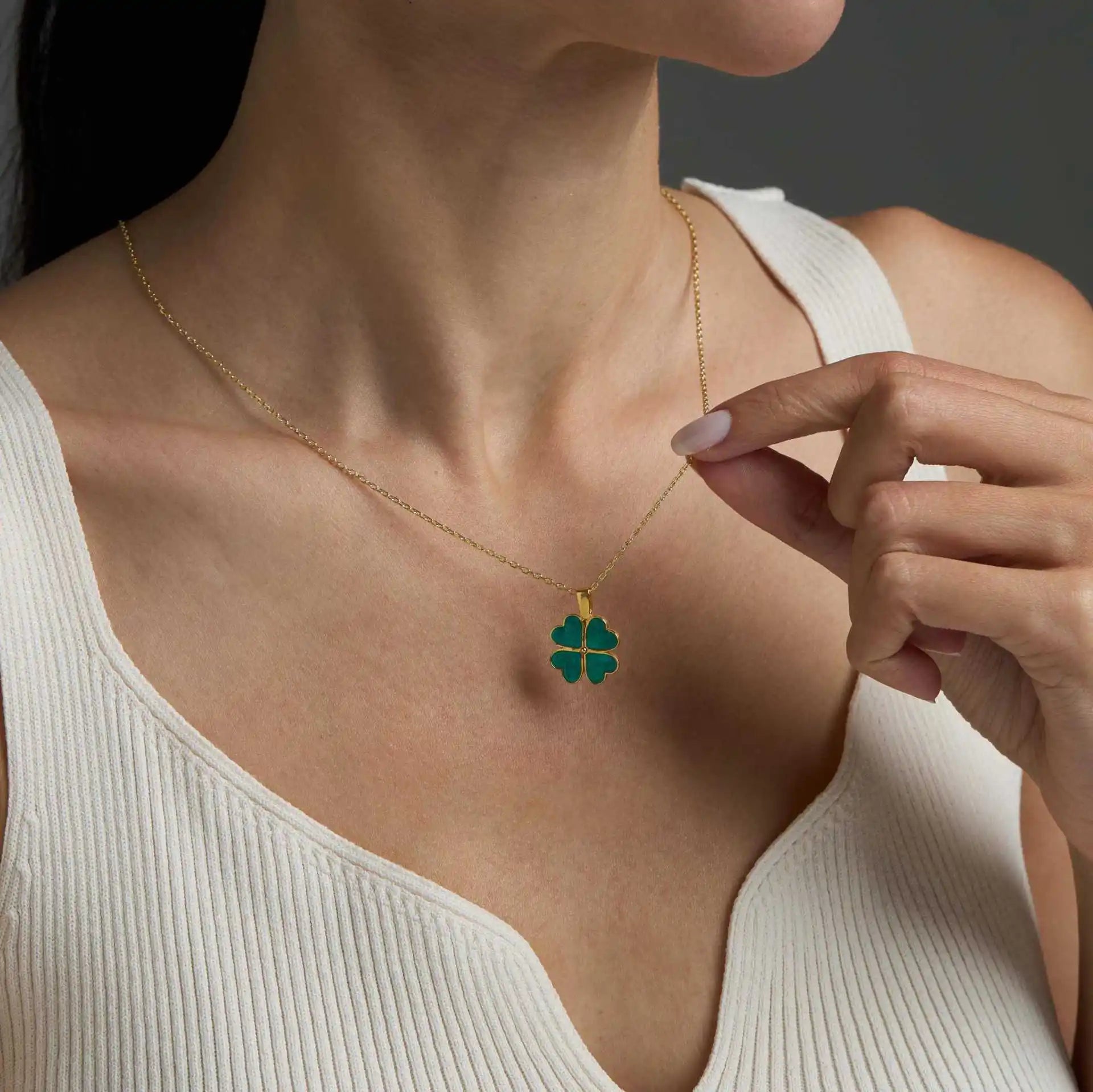 Lucky Natural Stone Clover Necklace for Girls Minimalist 14k Gold Plated Crystal Pendant Friendship Jewelry Birthday Gift