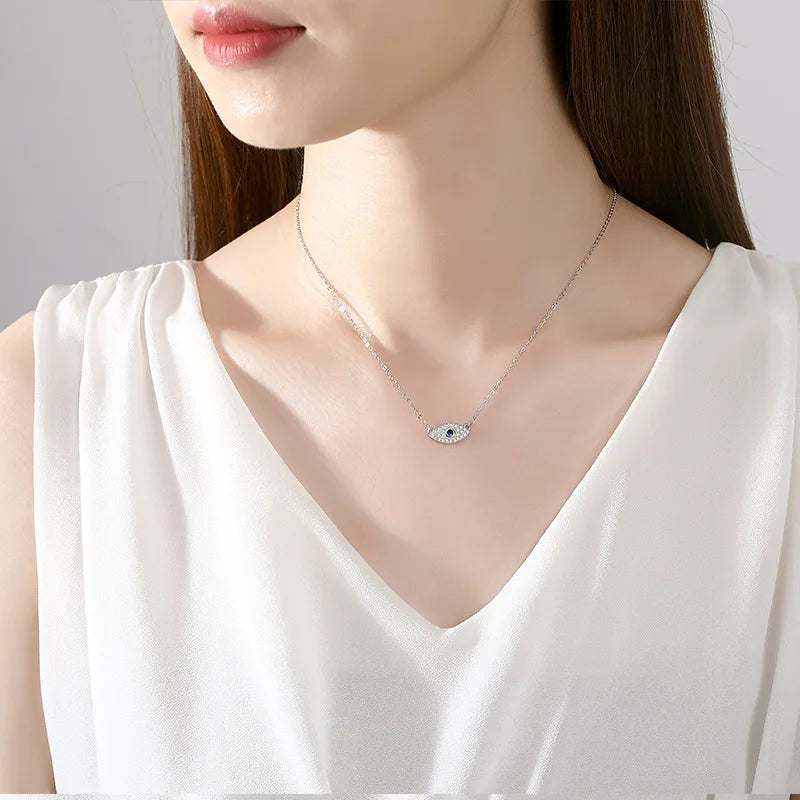 Fashion Fine Jewelry S925 Silver Necklace Zircon Blue Eyes Necklace for Women