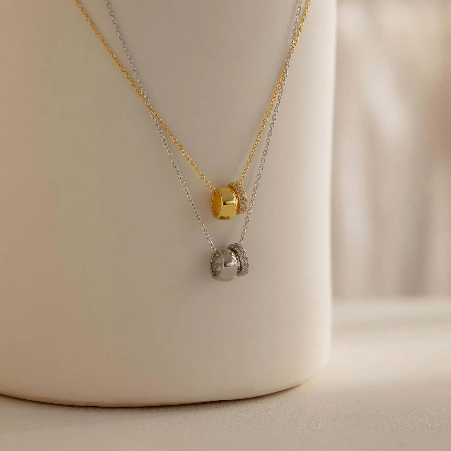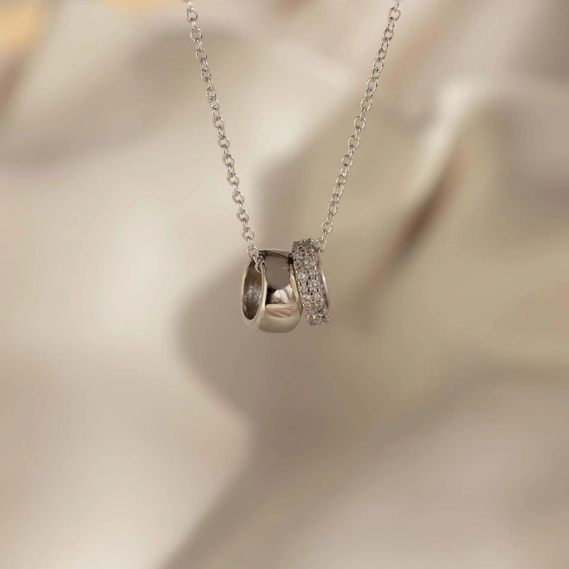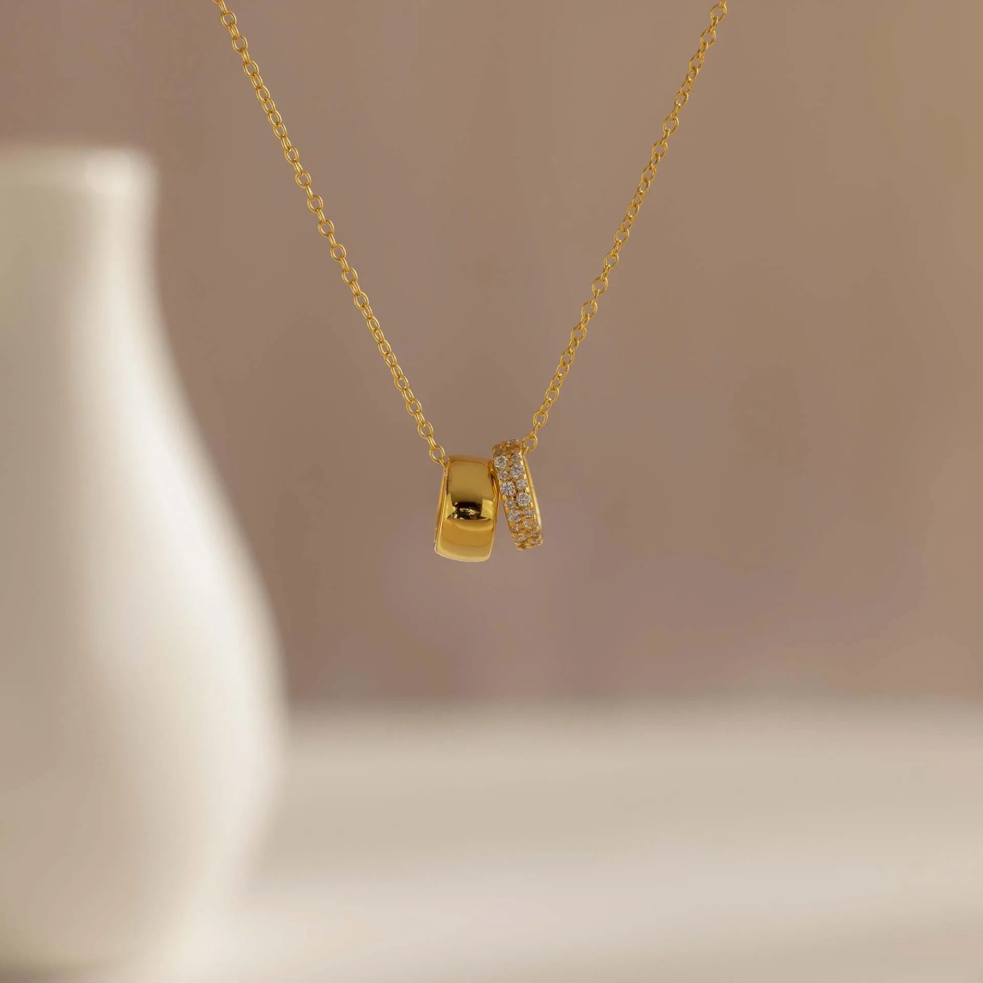 High Quality 18k Gold Plated Necklaces With Double Rings Unique Fashion 925 Silver Fine Pendant Necklace for Women