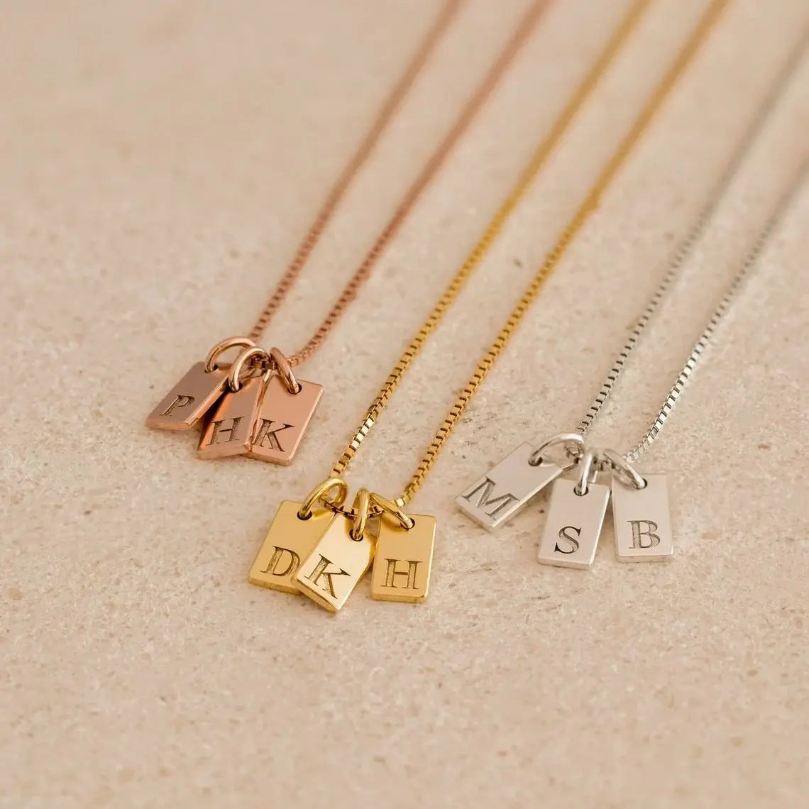 Dainty Gold Plated Plain Label Initial Necklace Personalized Letter Charm Necklace Gift for Women