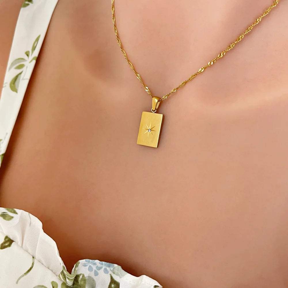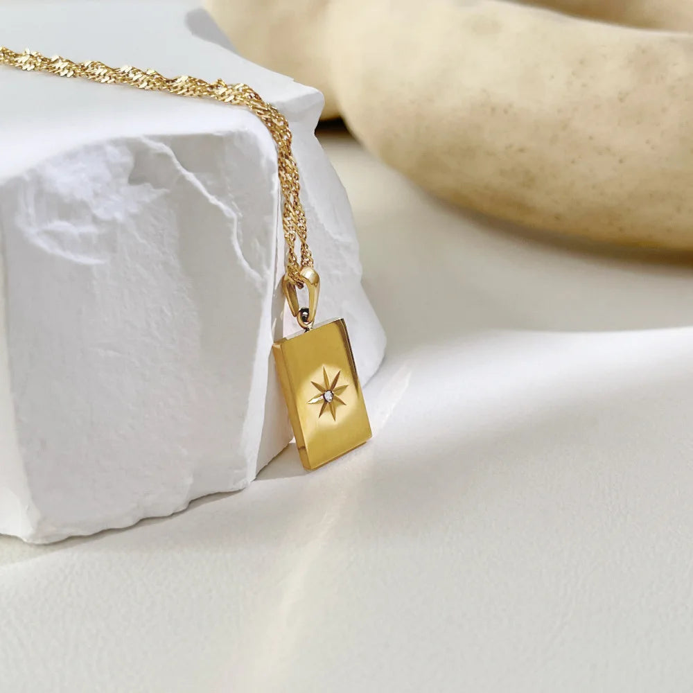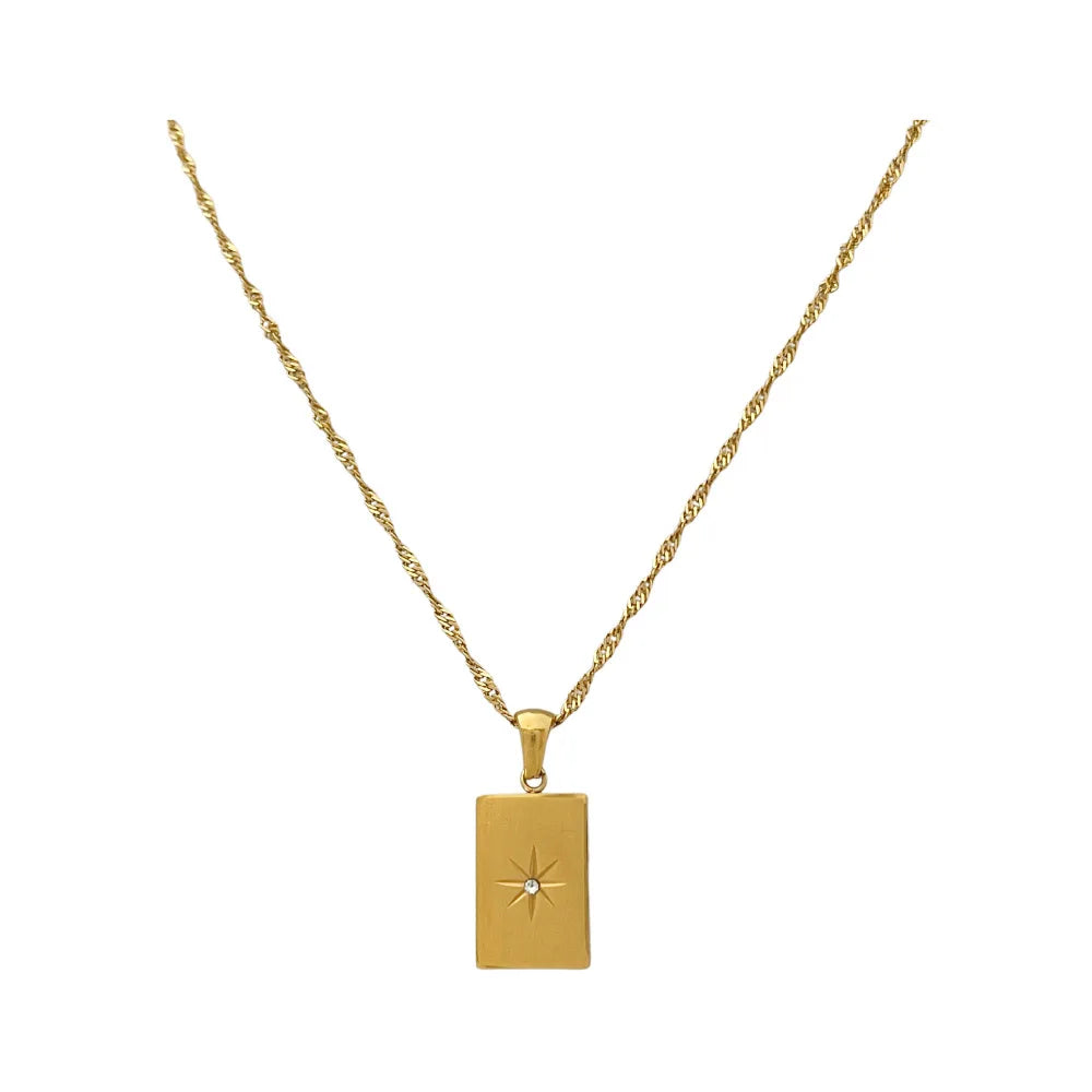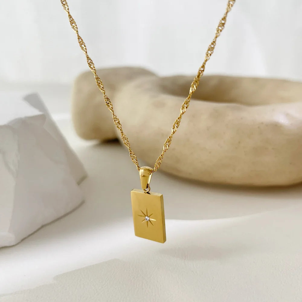 Hip Hop Trend Titanium Steel 18K Gold Rectangular North Star Necklace Starsation Plate Charm Necklace for Women