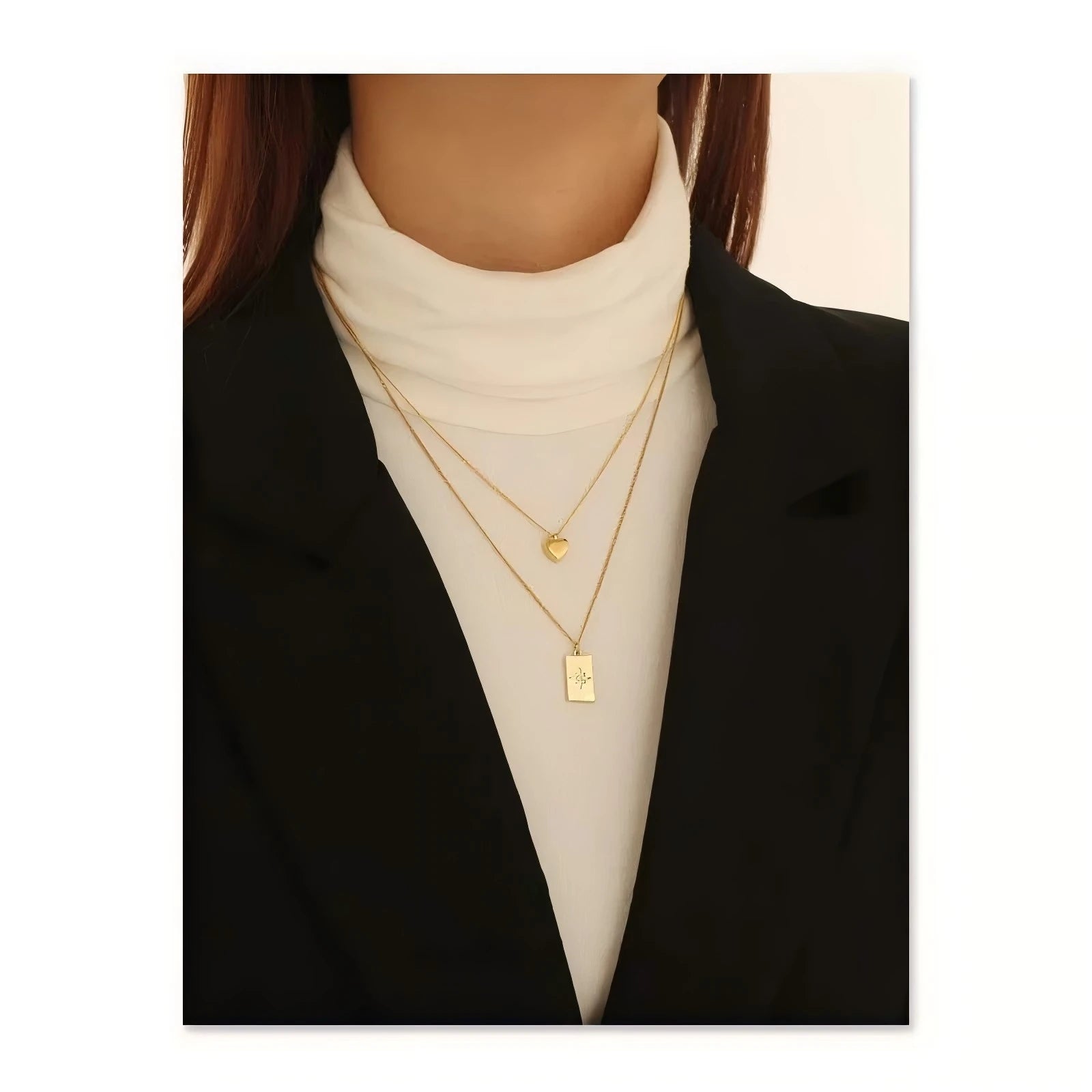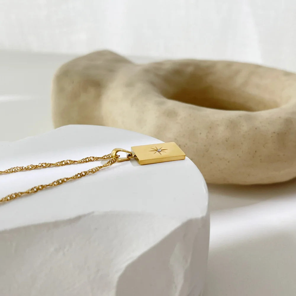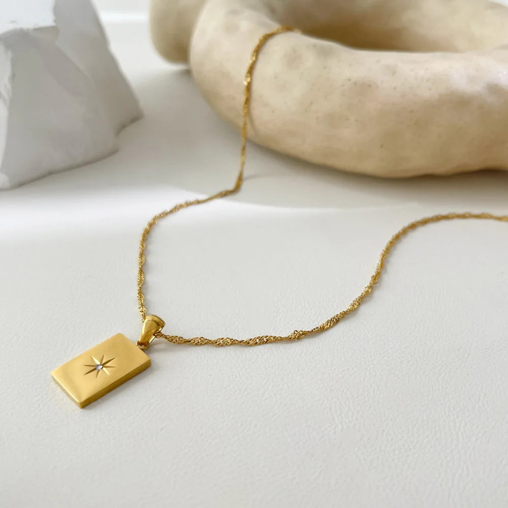 Hip Hop Trend Titanium Steel 18K Gold Rectangular North Star Necklace Starsation Plate Charm Necklace for Women