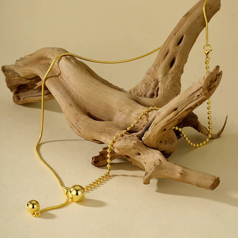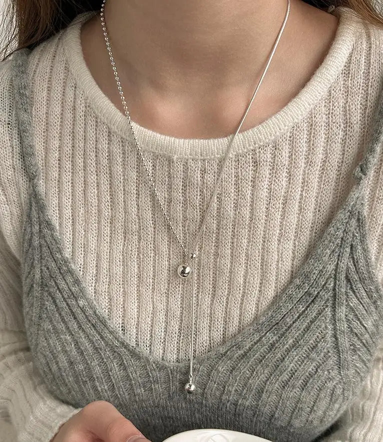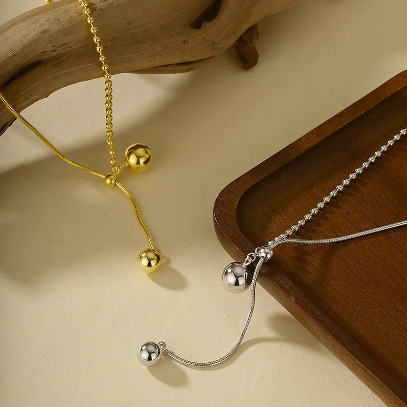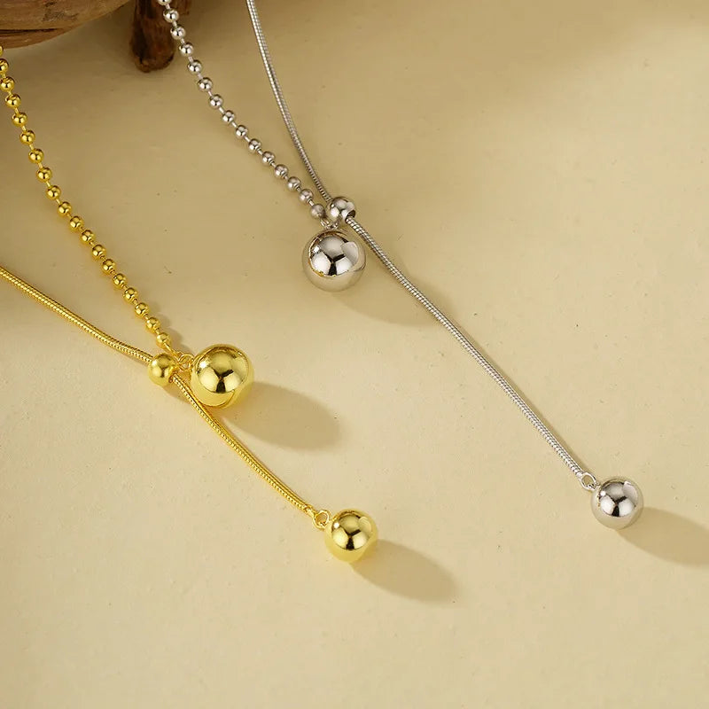 High Quality 925 Sterling Silver Necklace 18k Gold Plated Pull-out Ball Sweater Chain Necklaces for Women