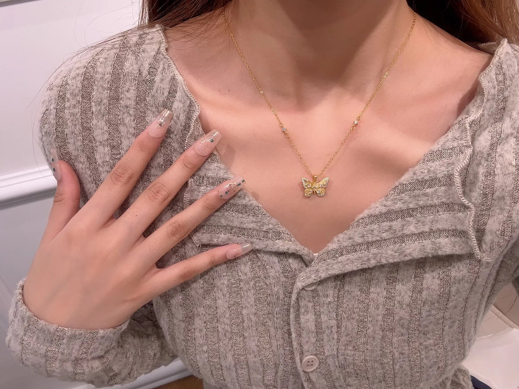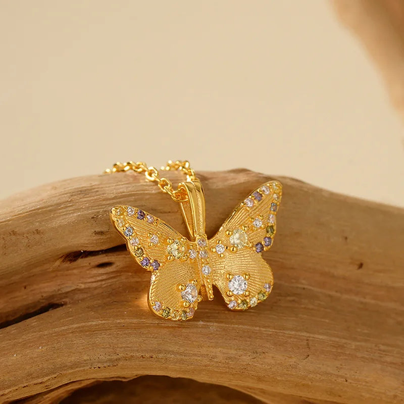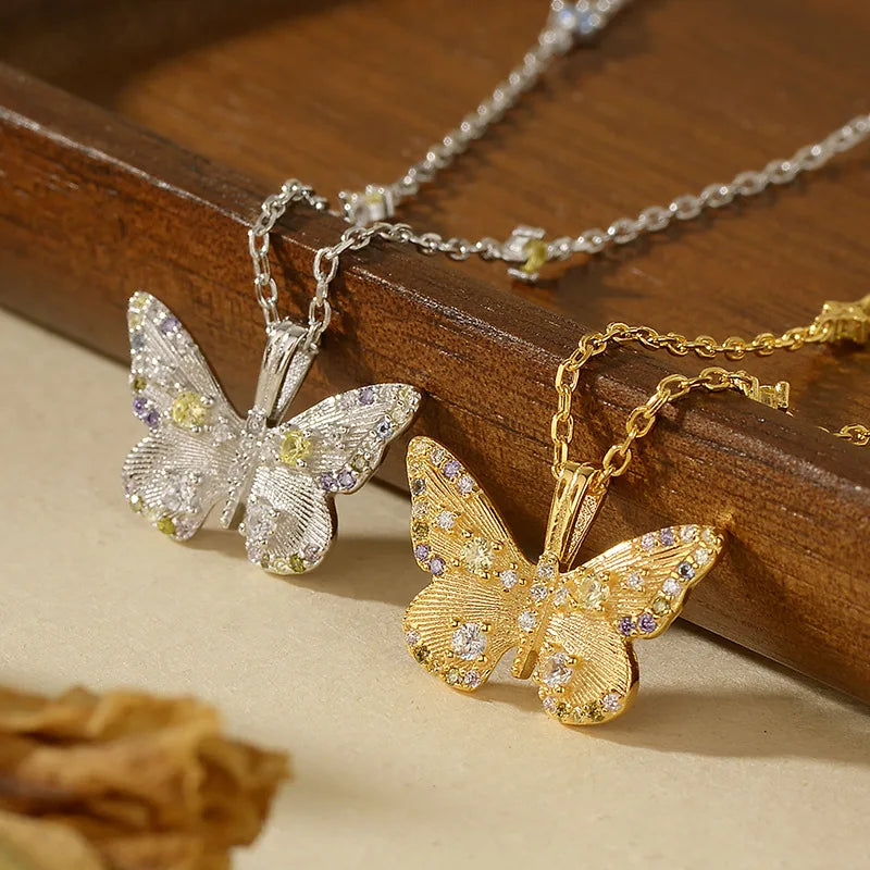High Quality Fine Jewelry 925 Silver butterfly Pendant Necklace Colorful Zirconia Butterfly Necklace for Women Gift